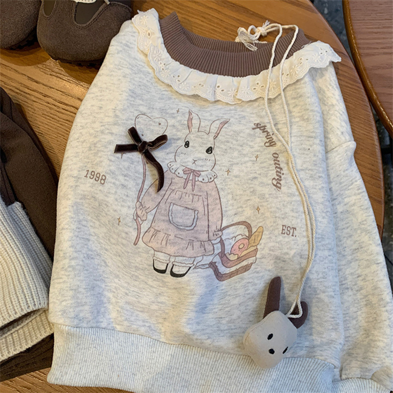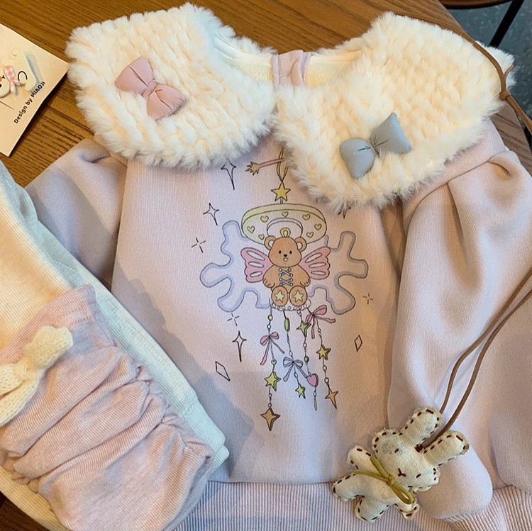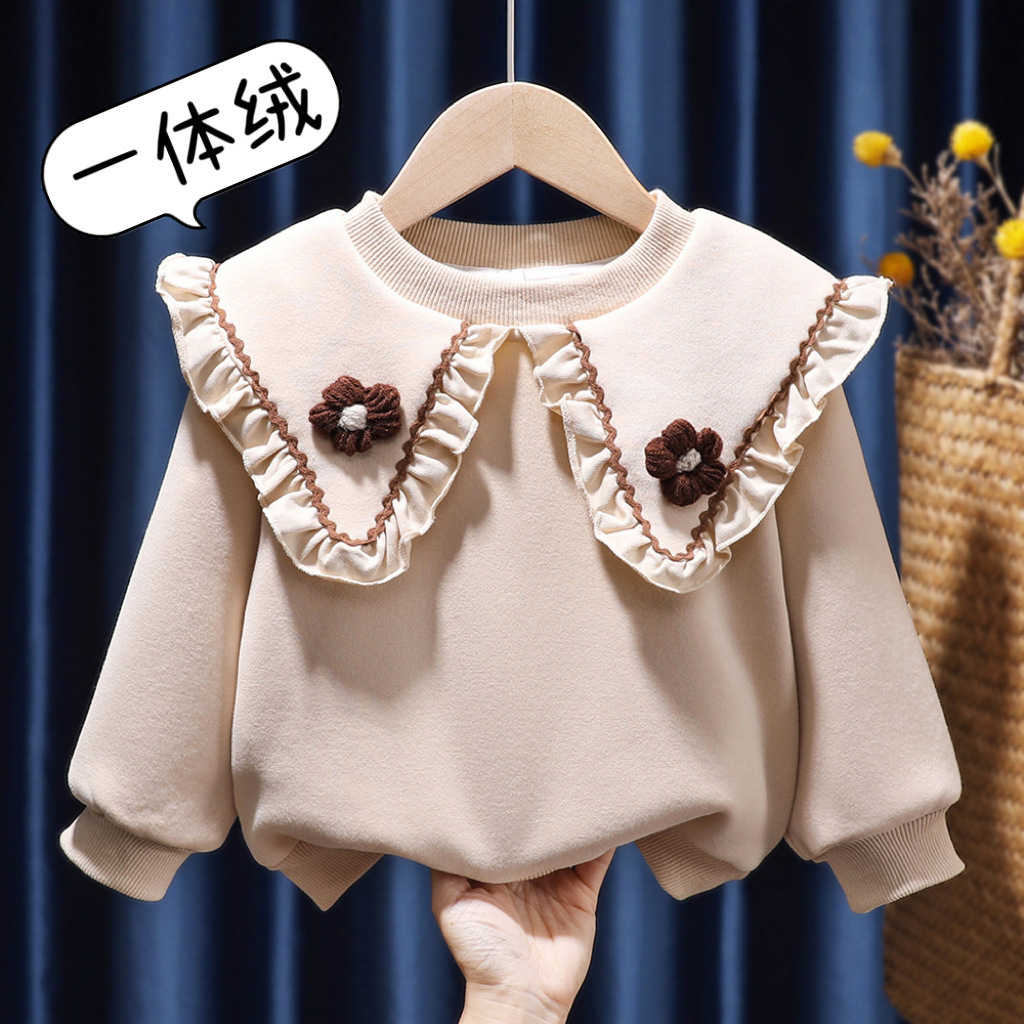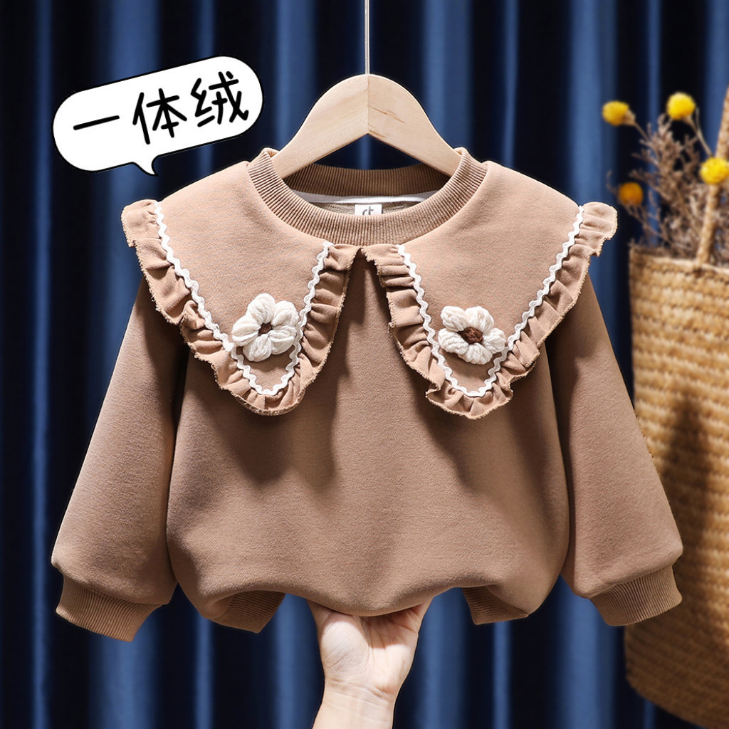 여아용 기모 스웨트셔츠 가을 겨울 2024 신상 겨울옷 한국 스타일 어린이 여아용 두꺼운 상의 캐주얼 트렌디 꽃무늬스토어 가기