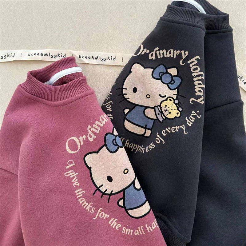 여아용 기모 스웨트셔츠 가을 겨울 2024 신상 겨울옷 한국 스타일 어린이 여아용 두꺼운 상의 캐주얼 트렌디 꽃무늬