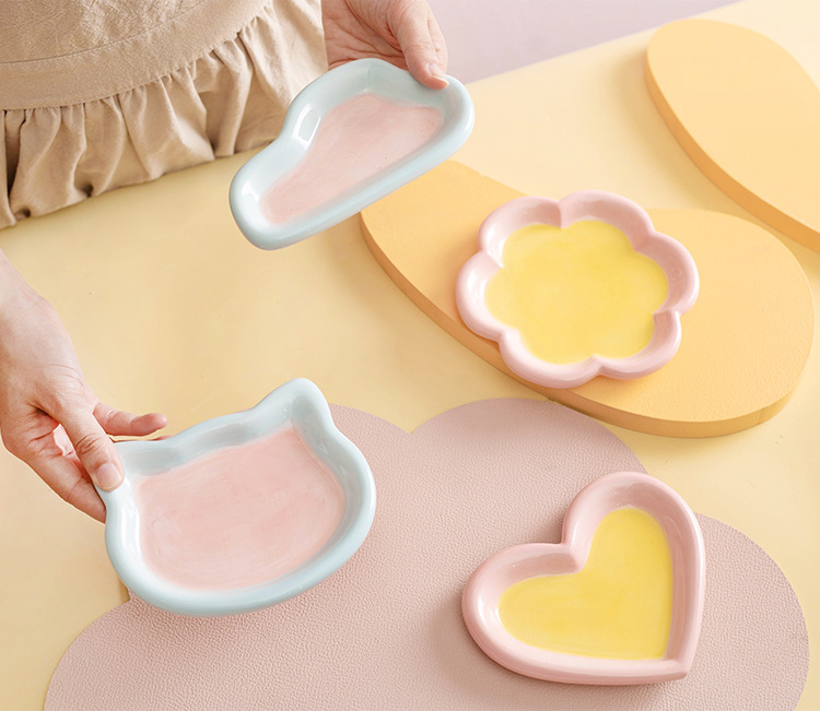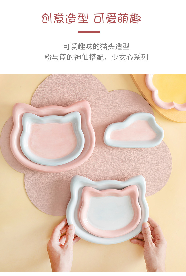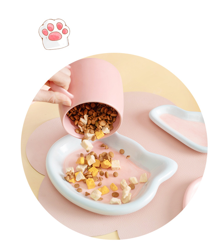 한국 인 스타일 손으로 그린 낙서 접시 고양이 그릇 고양이 음식 간식 동결건조 통조림 세라믹 디너 플레이트 음식 분지