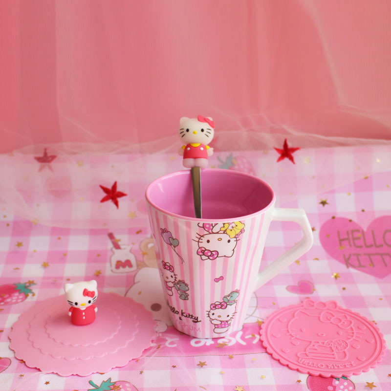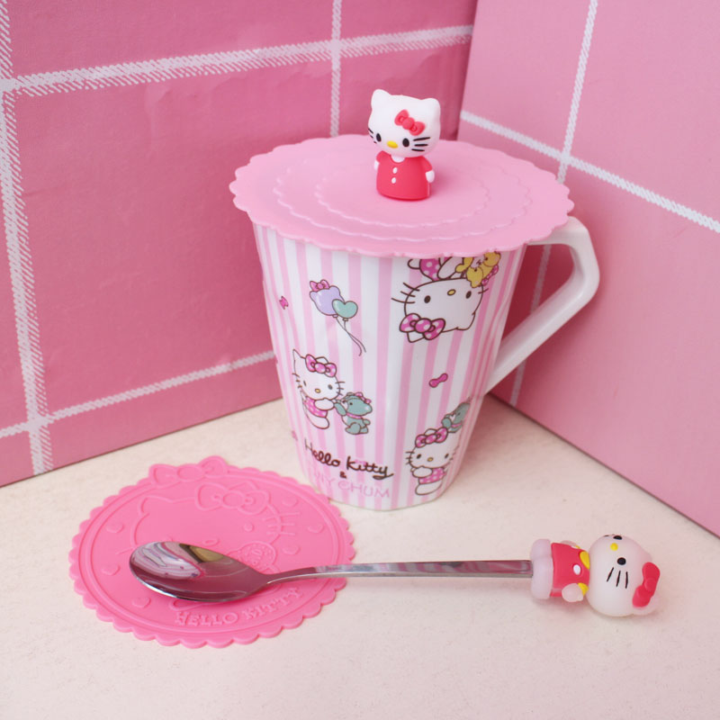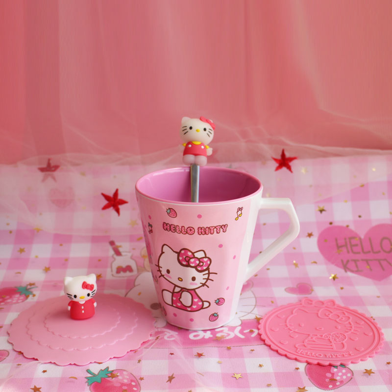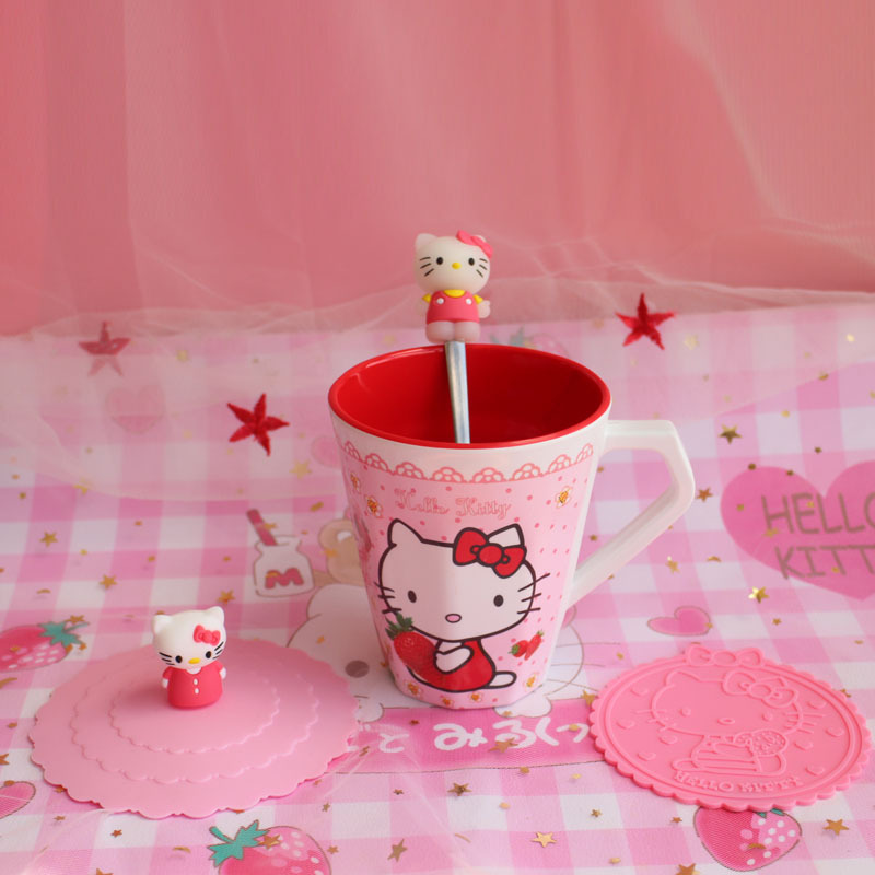 • 컵 뚜껑 + 스푼 + 코스터 + 딸기 KT 핸들 컵