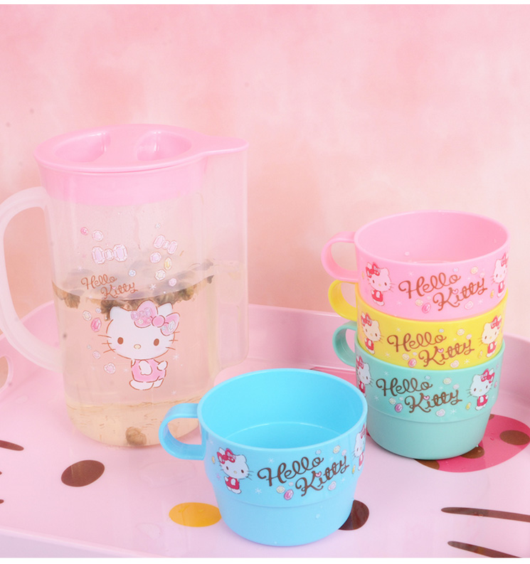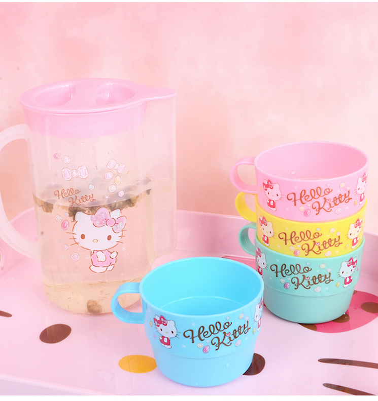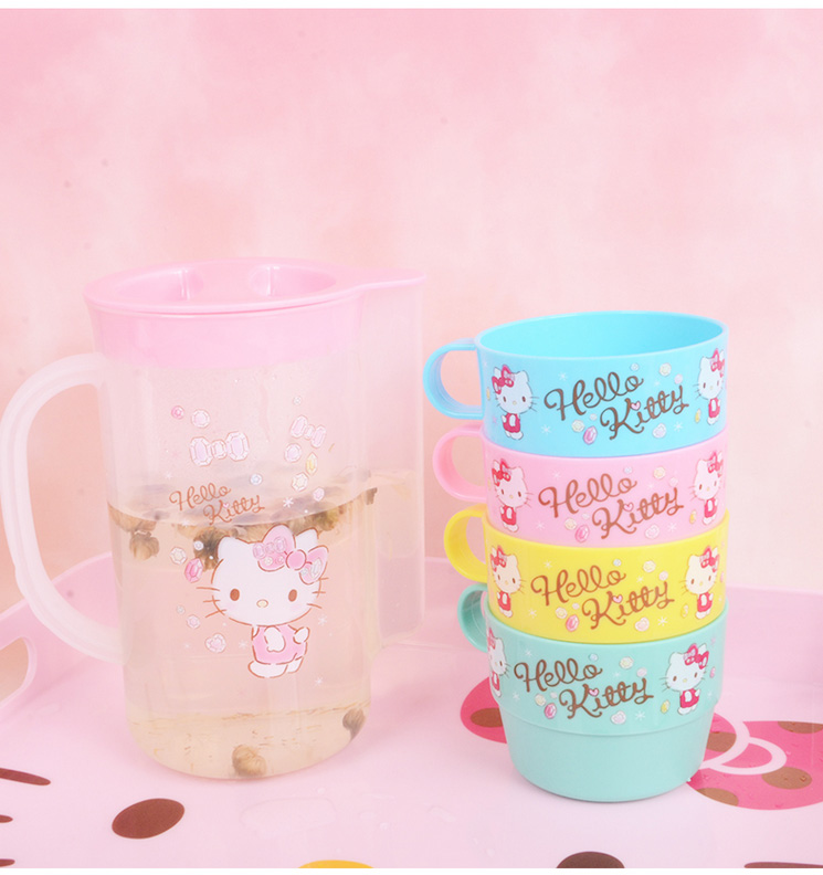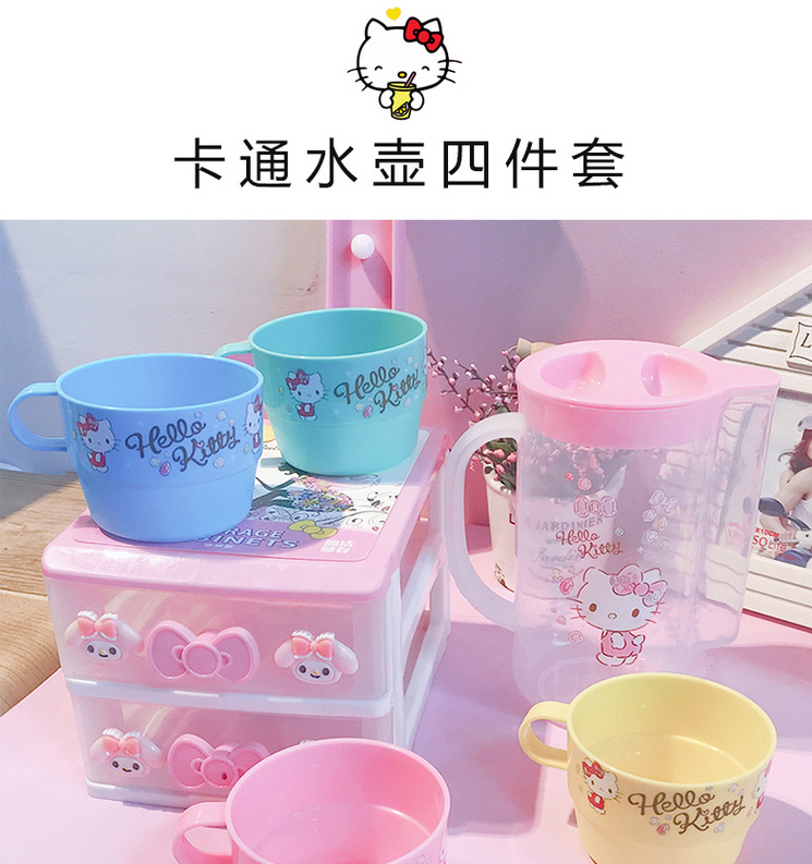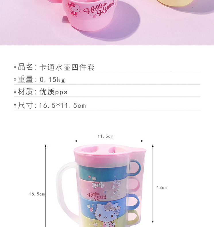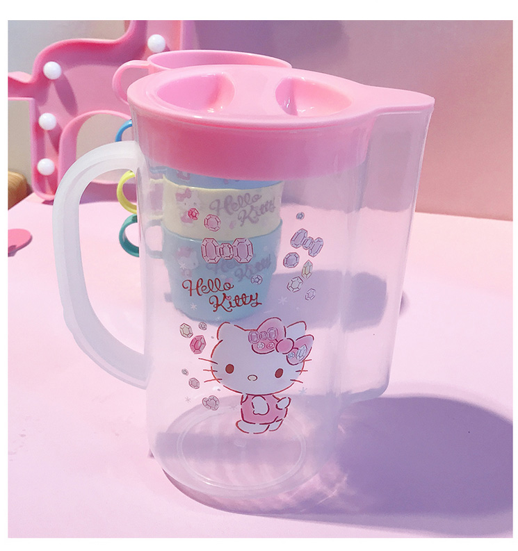 플라스틱 차가운 물 병 차가운 물 병 높은 온도 저항하는 내열 가정용 물 컵 뚜껑 세트 창조적 인 만화 물 세트 냄비 쿨