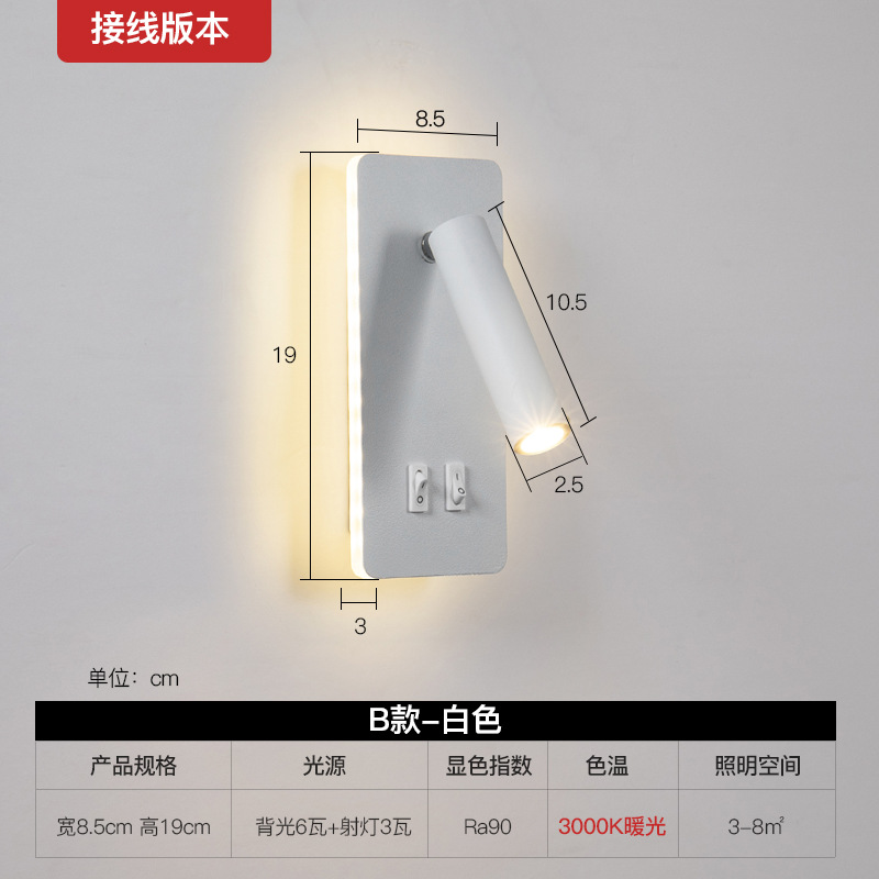 맞춤형 북유럽 스타일 창의적인 침대 옆 벽등 호텔 침실 회전 가능 스위치 포함 LED 눈 보호 침대 옆 독서 벽등