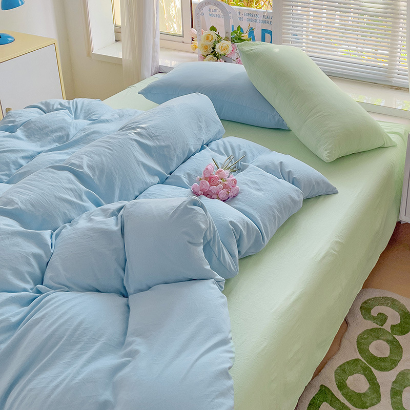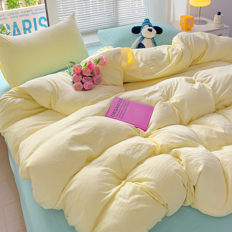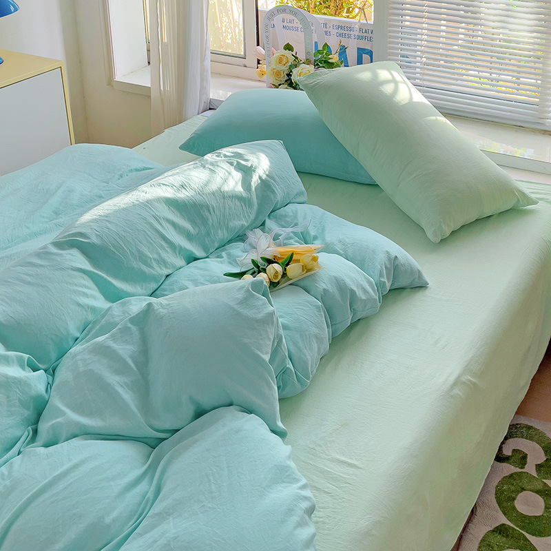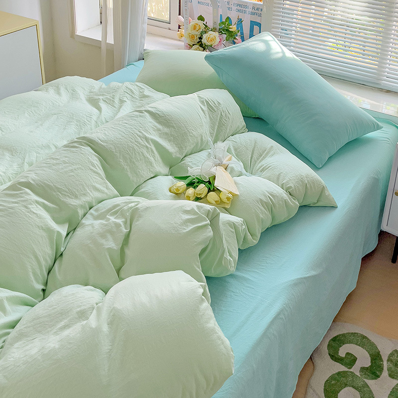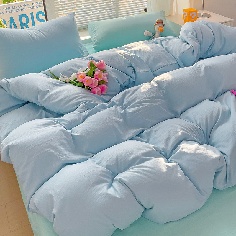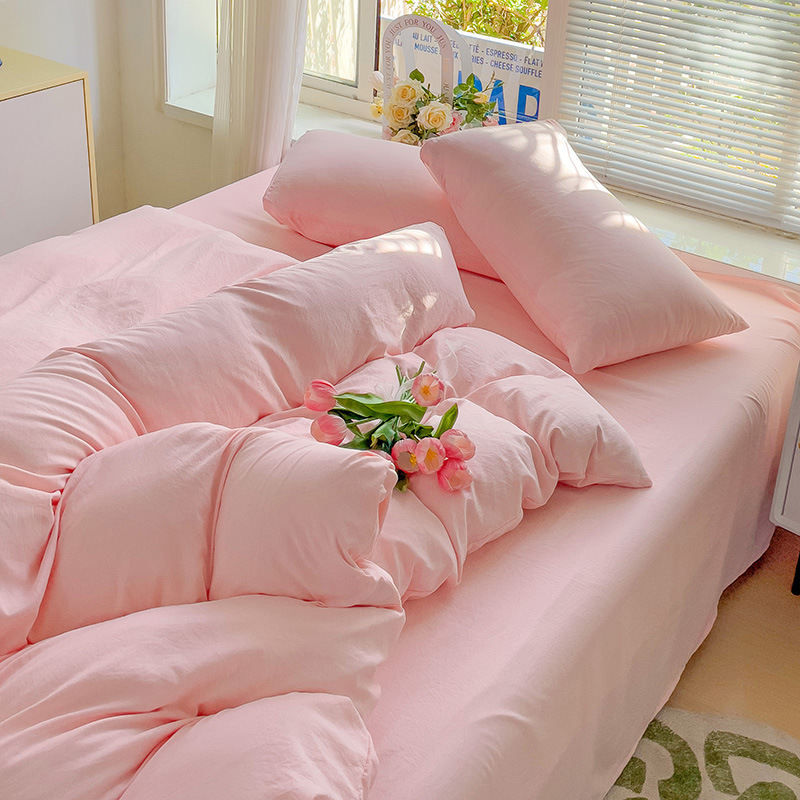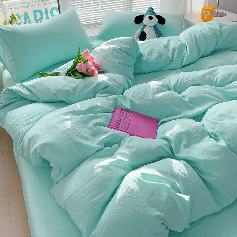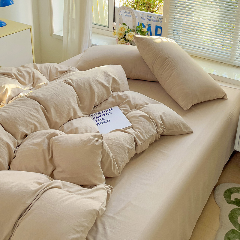 새로운 스타일 4 조각 세트 간단한 일본 스타일 솔리드 컬러 세척 코튼 침대 시트 침대 커버 세척 면화 기숙사 싱글 더블스토어 가기