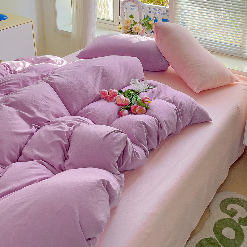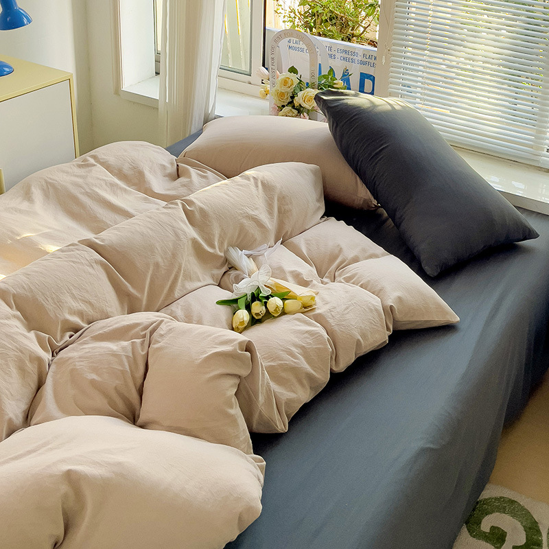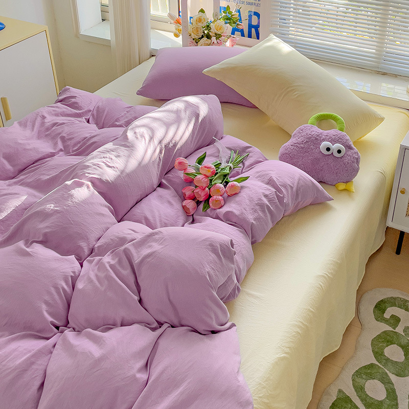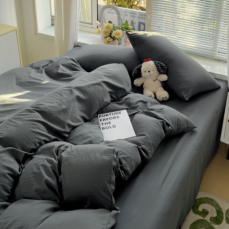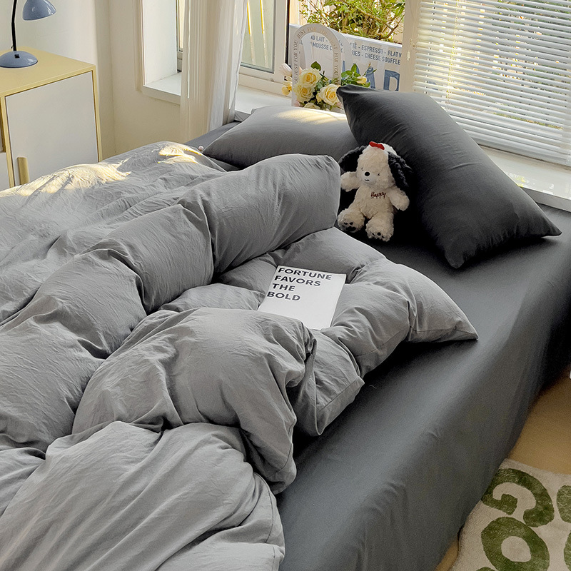 새로운 스타일 4 조각 세트 간단한 일본 스타일 솔리드 컬러 세척 코튼 침대 시트 침대 커버 세척 면화 기숙사 싱글 더블