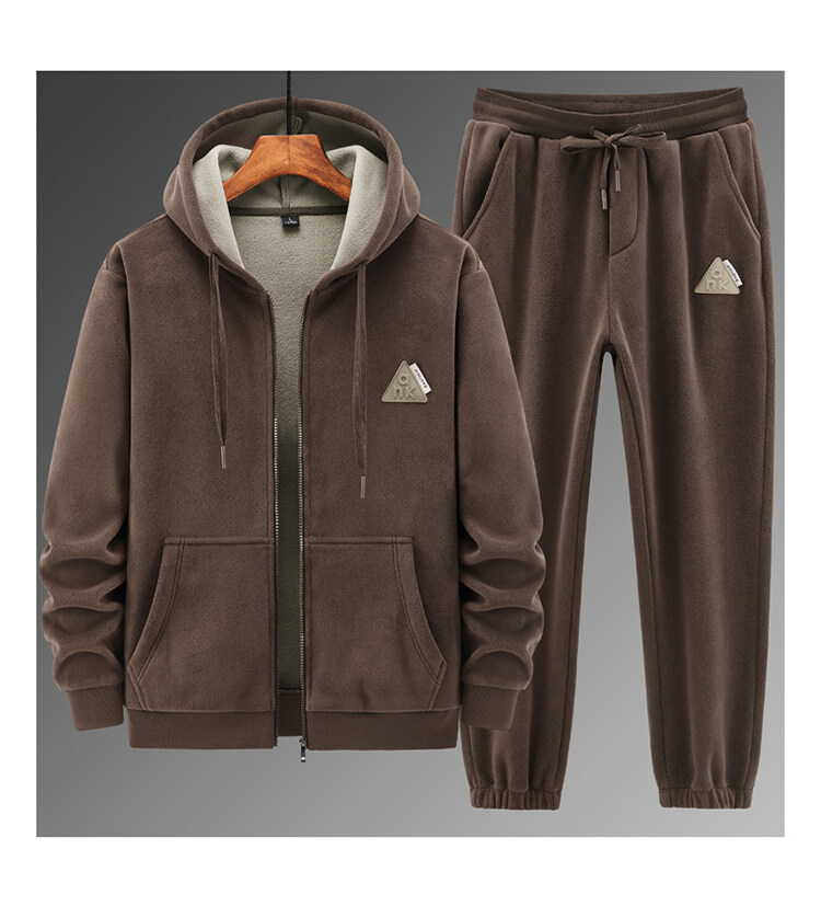 크로스 보더 겨울 새로운 기모 두꺼운 세트 남자의 램 벨벳 까마귀 면 바지 캐주얼 스포츠 따뜻한 세트