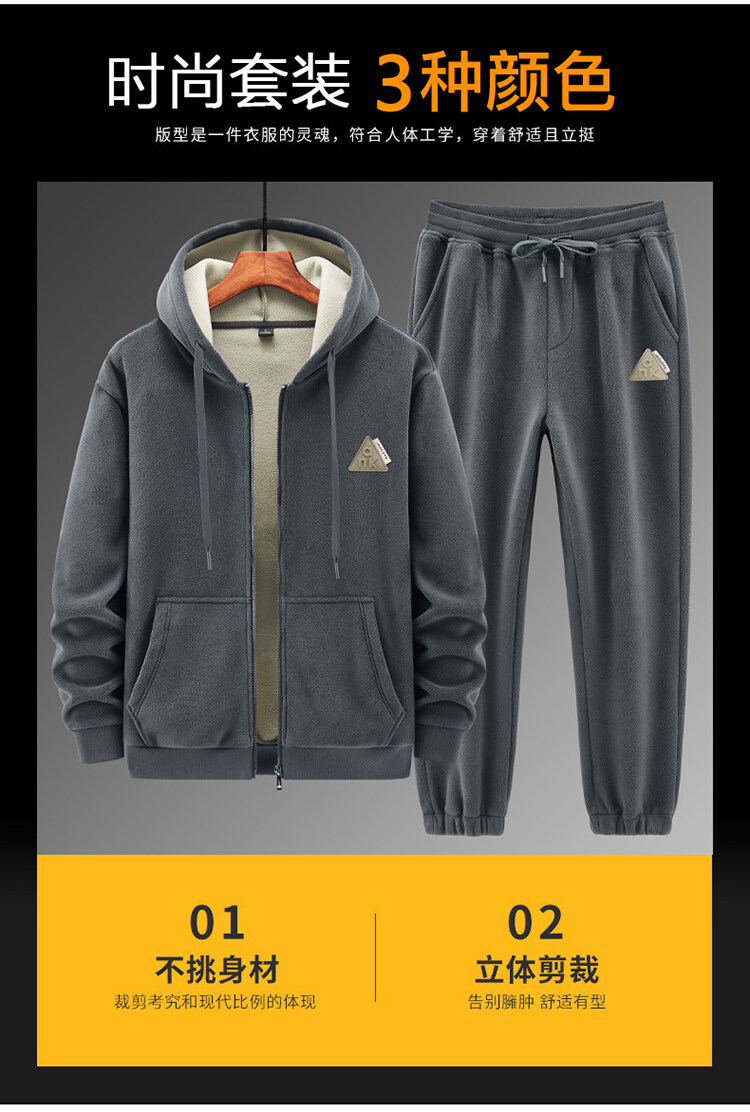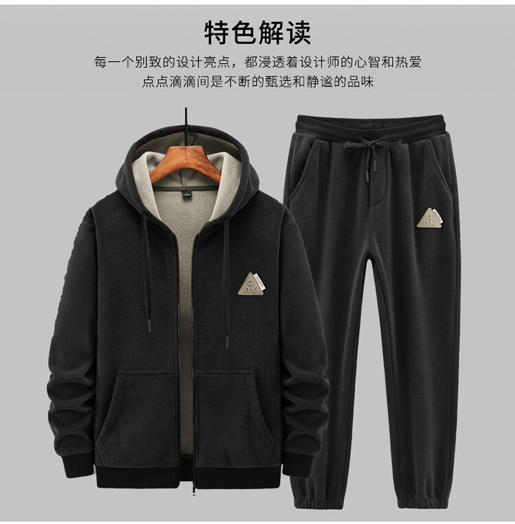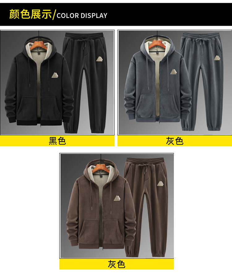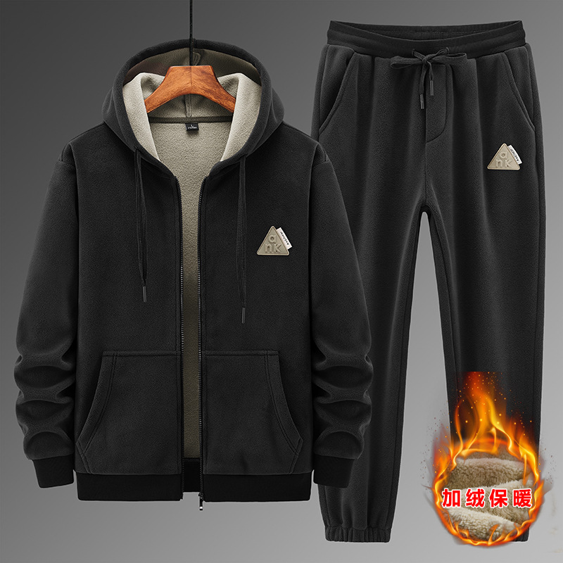 크로스 보더 겨울 새로운 기모 두꺼운 세트 남자의 램 벨벳 까마귀 면 바지 캐주얼 스포츠 따뜻한 세트스토어 가기
