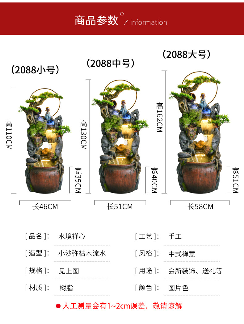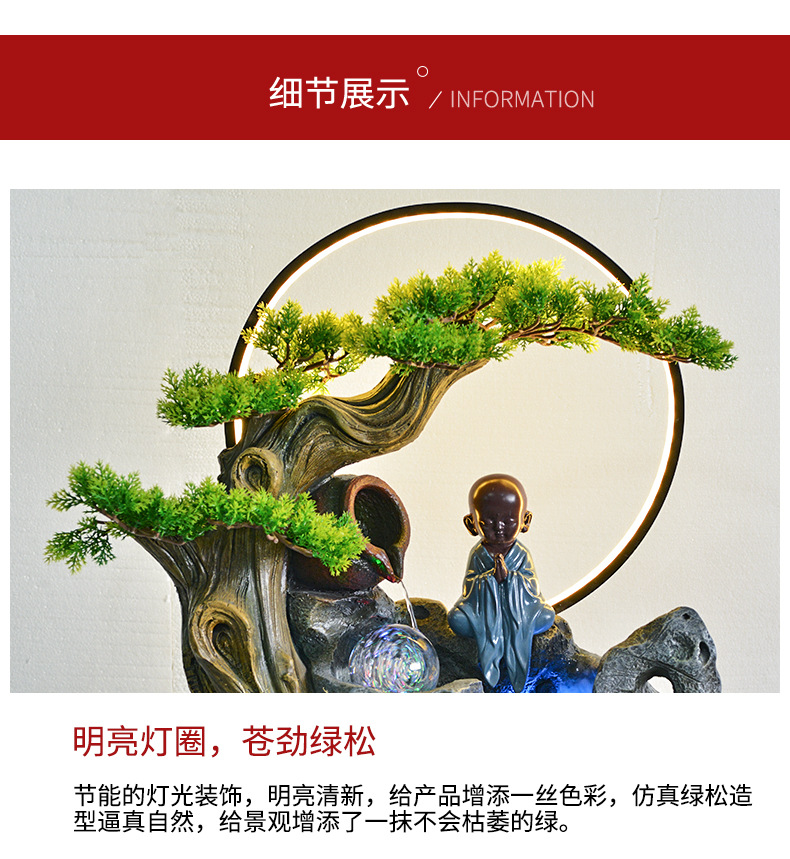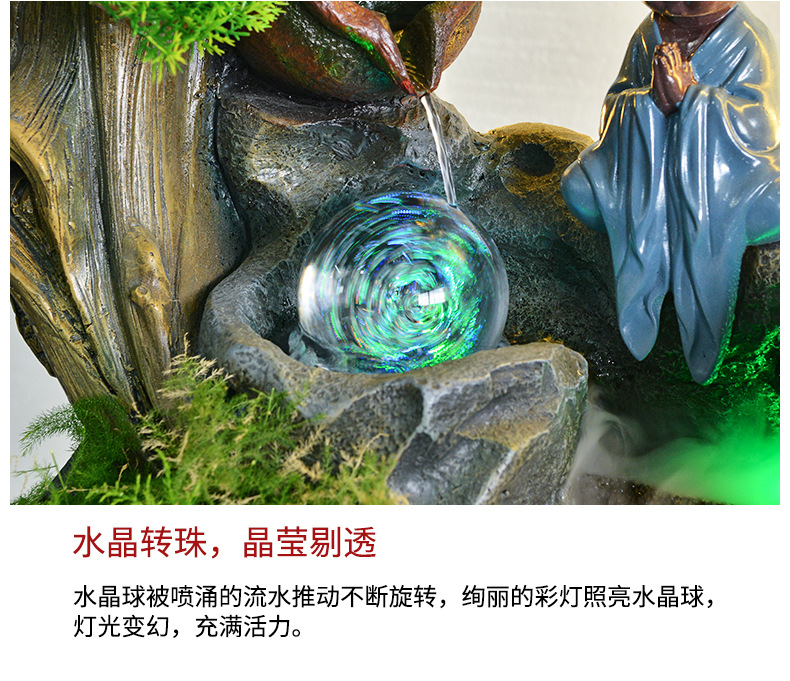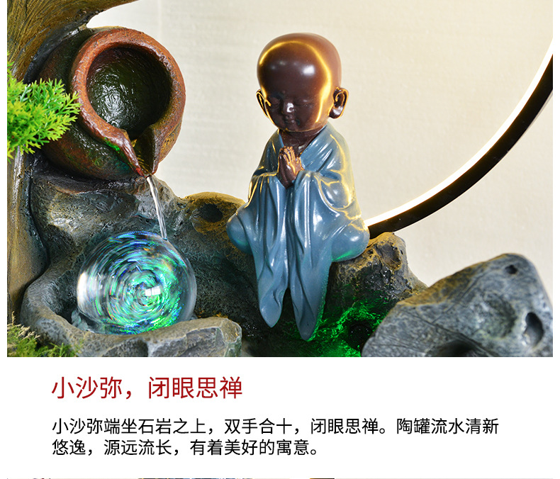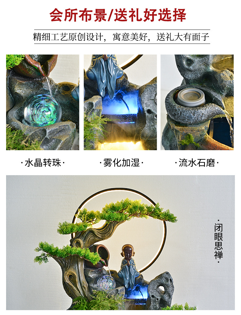 중국식 승려 선 암석 유수 분수 순환 물 장식품 실내 조경 이전 복 오픈 선물