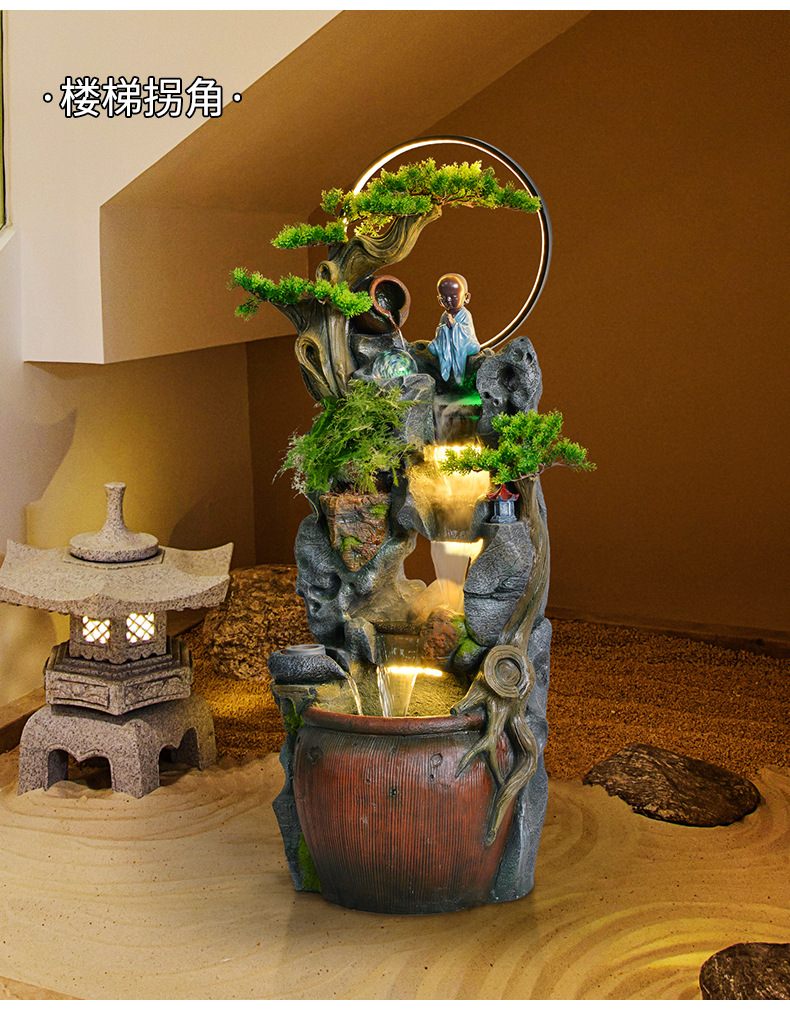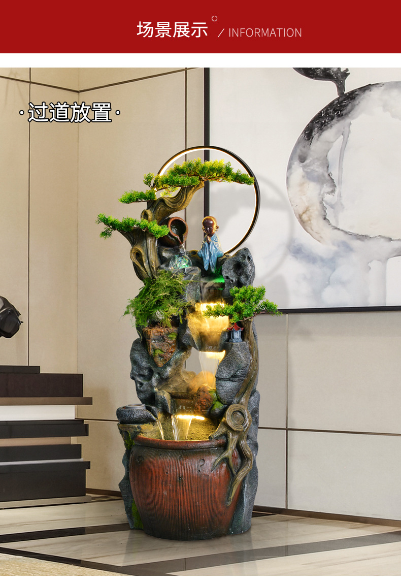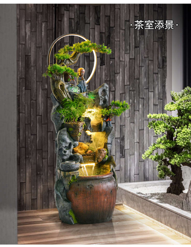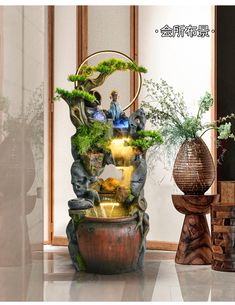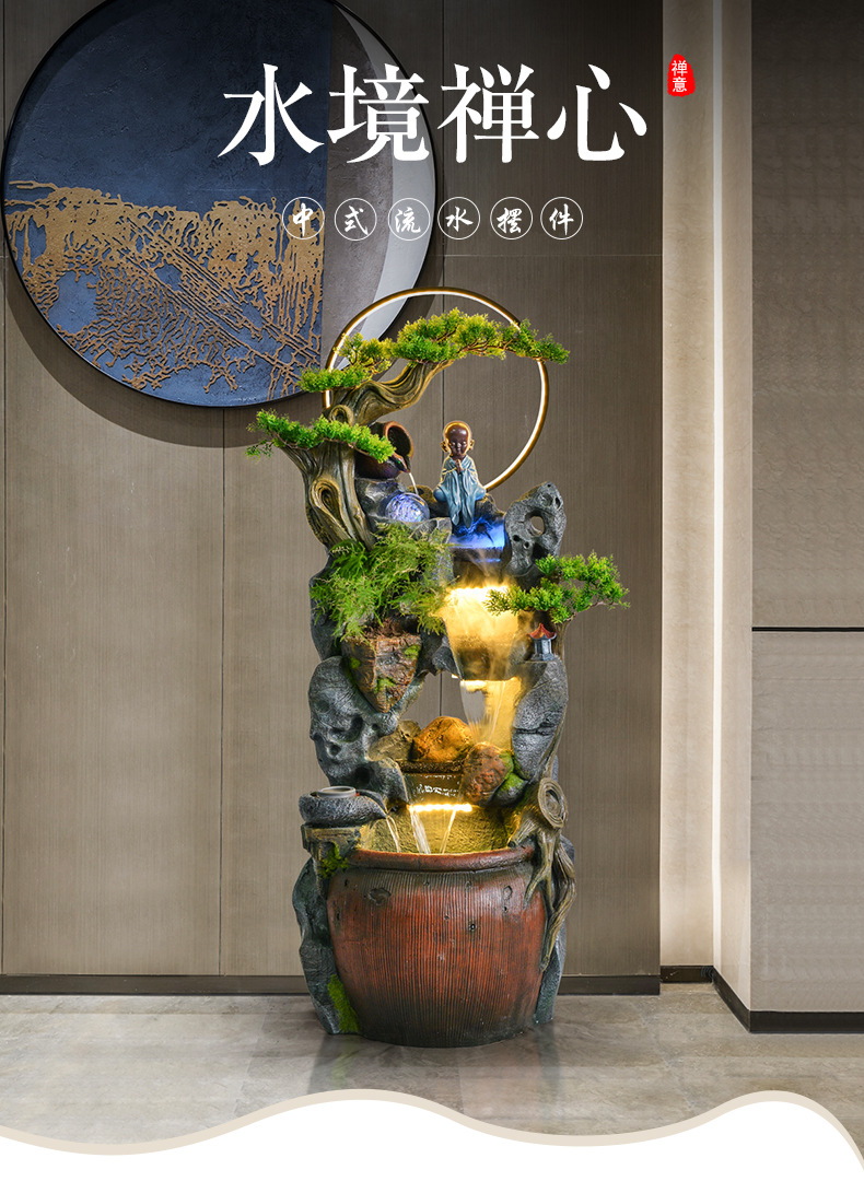 중국식 승려 선 암석 유수 분수 순환 물 장식품 실내 조경 이전 복 오픈 선물스토어 가기