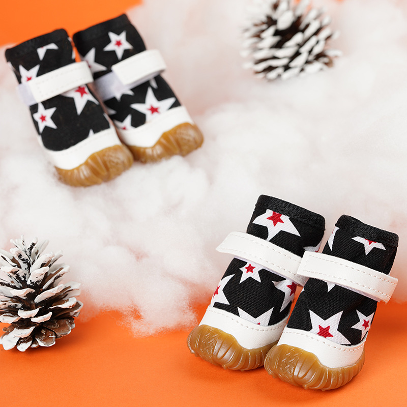 2022 새로운 애완 동물 작은 개 면화 신발 테디 베어 오각별 겨울 팬 따뜻한 4 두꺼운
