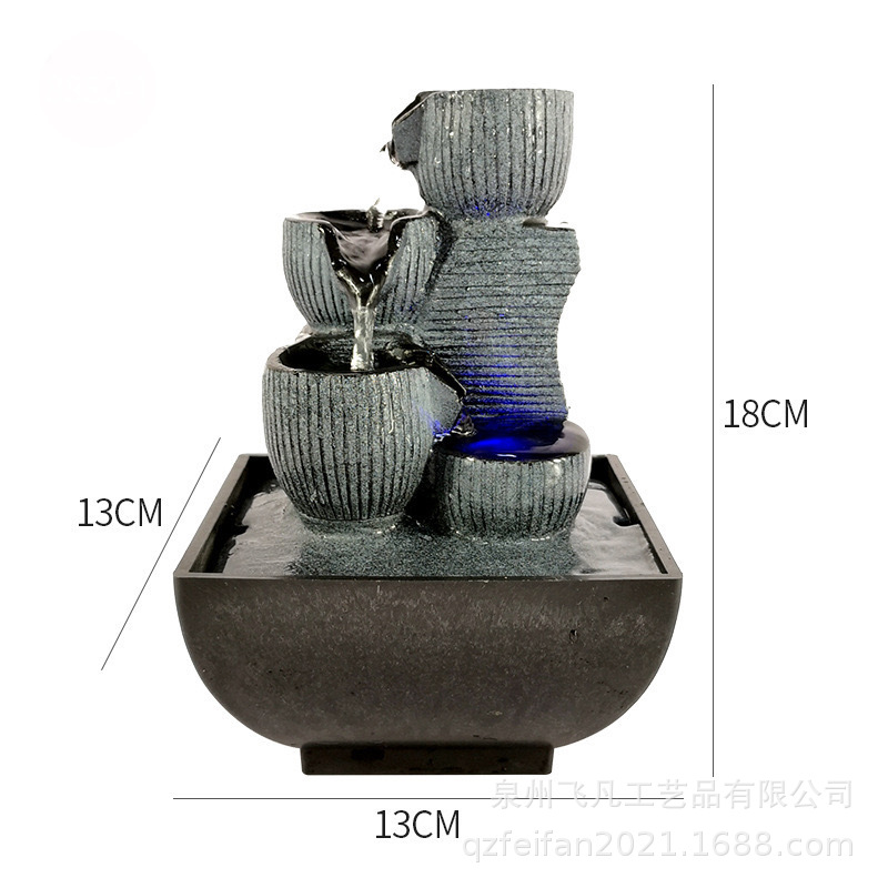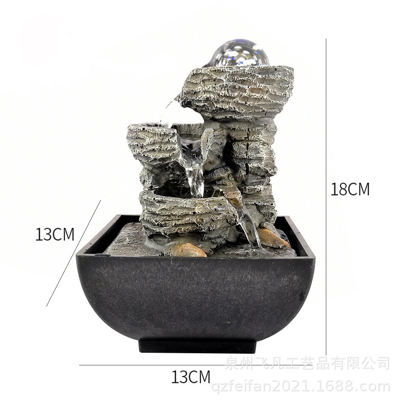 국경 간 데스크탑 작은 바위 분수 흐르는 물 장식품 수지 공예 사무실 데스크탑 홈 가구 선물 작은 장식품