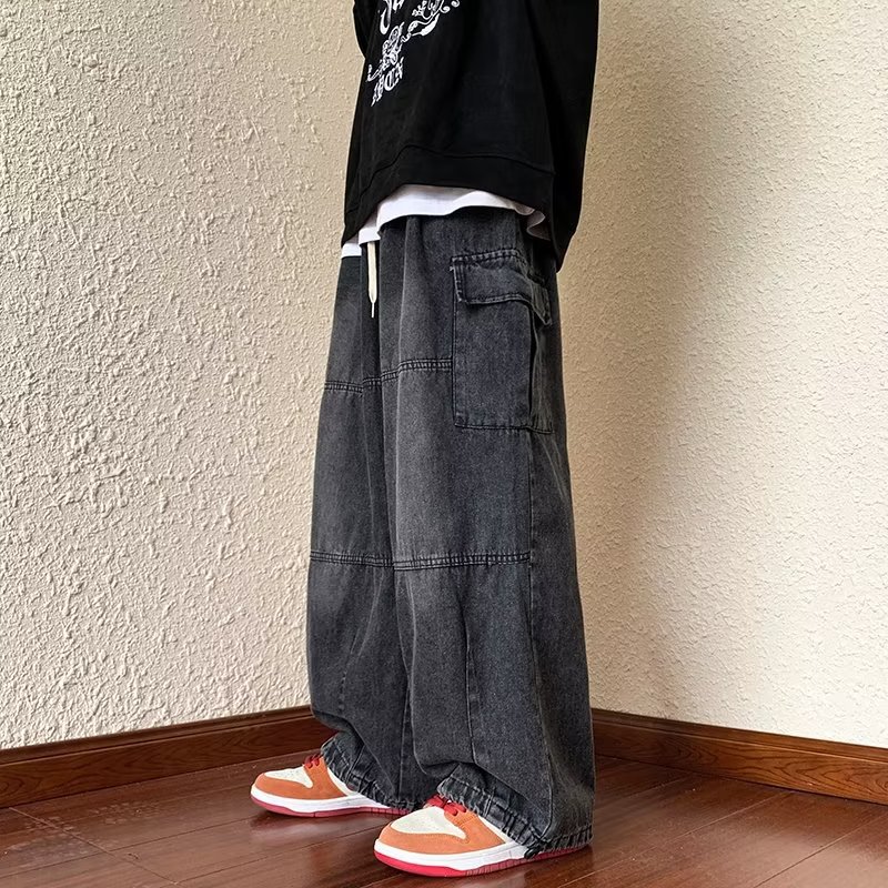 유행 유행 유행 청바지 씻어 패션 남자의 바지 느슨한 스트레이트 튜브 청소년 인기 스트레이트 피트 가을 하이 웨이스트스토어 가기