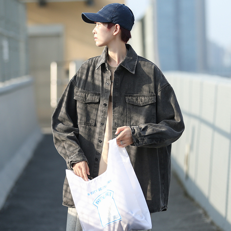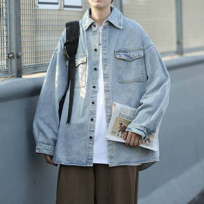 春秋牛仔外套男潮牌ins休闲复古高街美式痞帅日系宽松青少年夹克