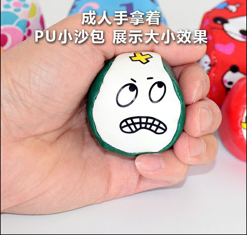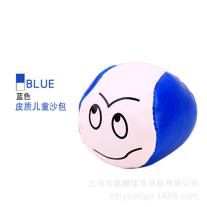 • 웃는 얼굴이 있는 파란색 PU 작은 모래주머니