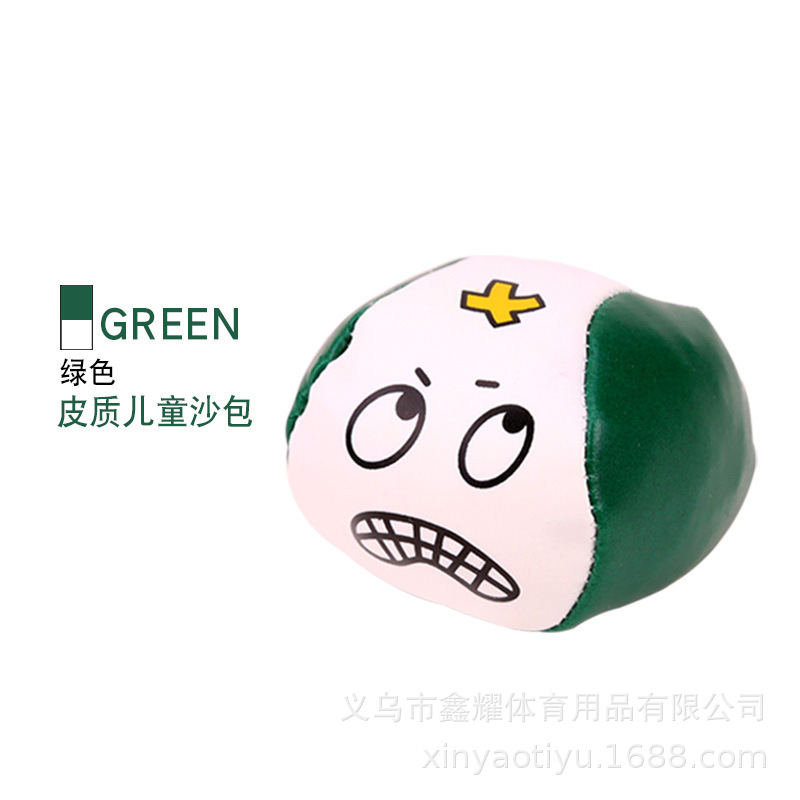 • 웃는 얼굴이 있는 PU 작은 모래주머니 녹색
