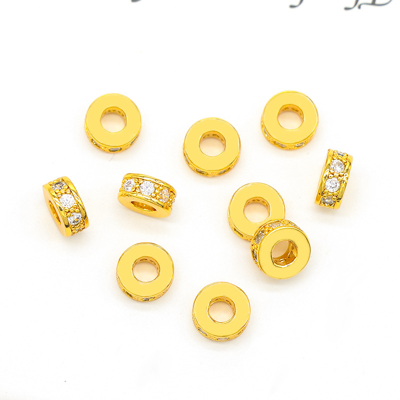 구리 도금 18K 리얼 골드 다이아몬드 테두리 구슬 14K 골드 컬러 스페이서 느슨한 구슬 DIY 보석 액세서리스토어 가기