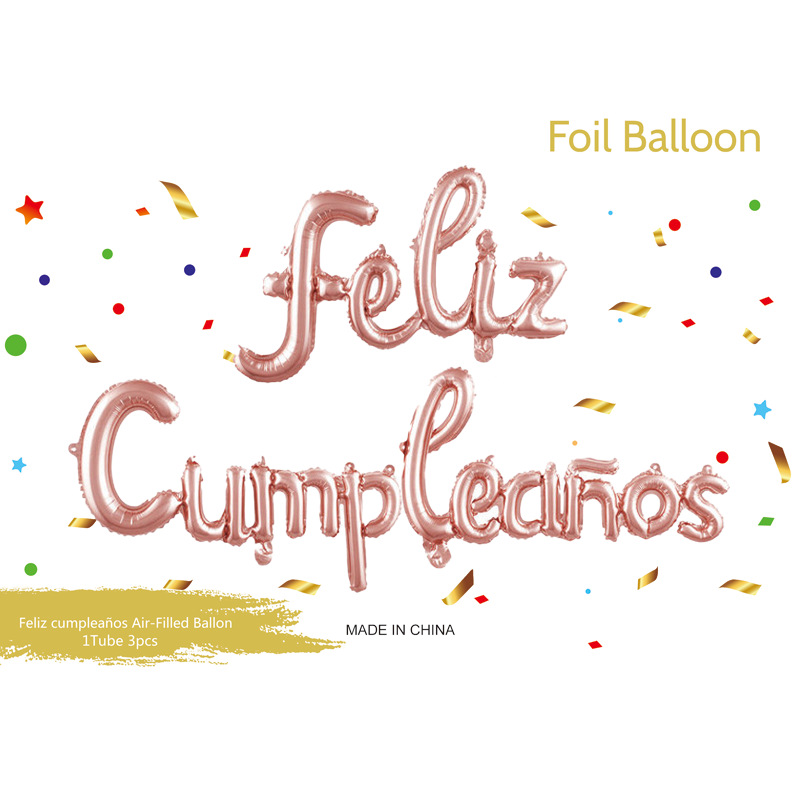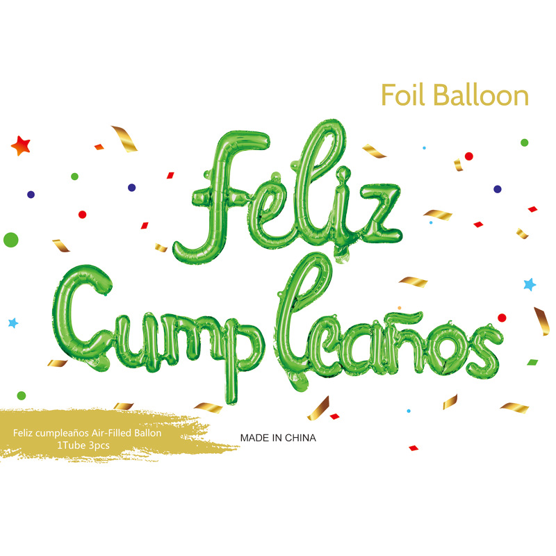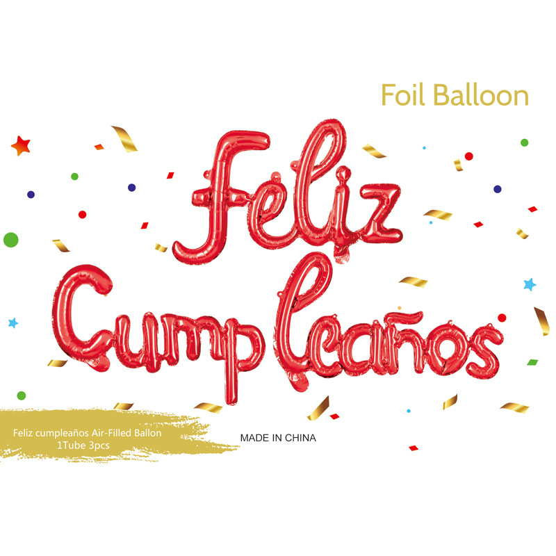 공장 도매 스페인어 결합 생일 축하 알루미늄 필름 세트 feliz cumpleanos 풍선 포장스토어 가기