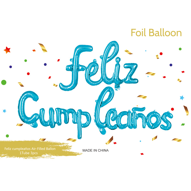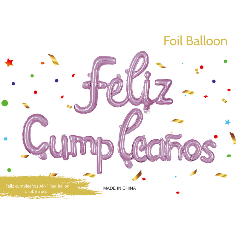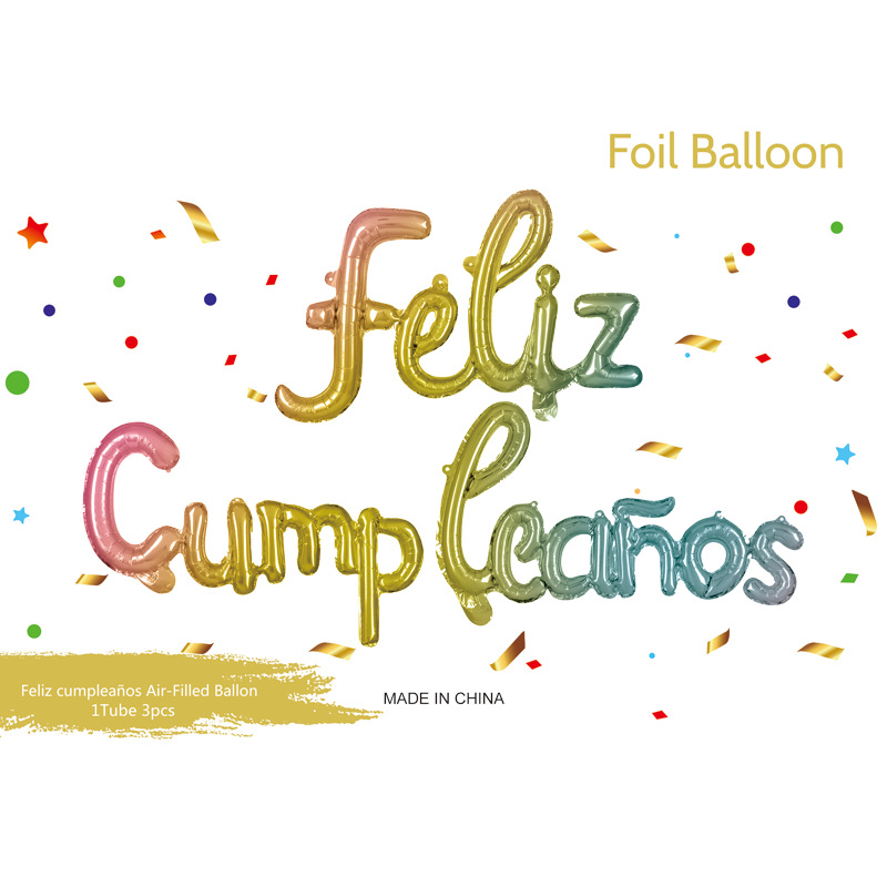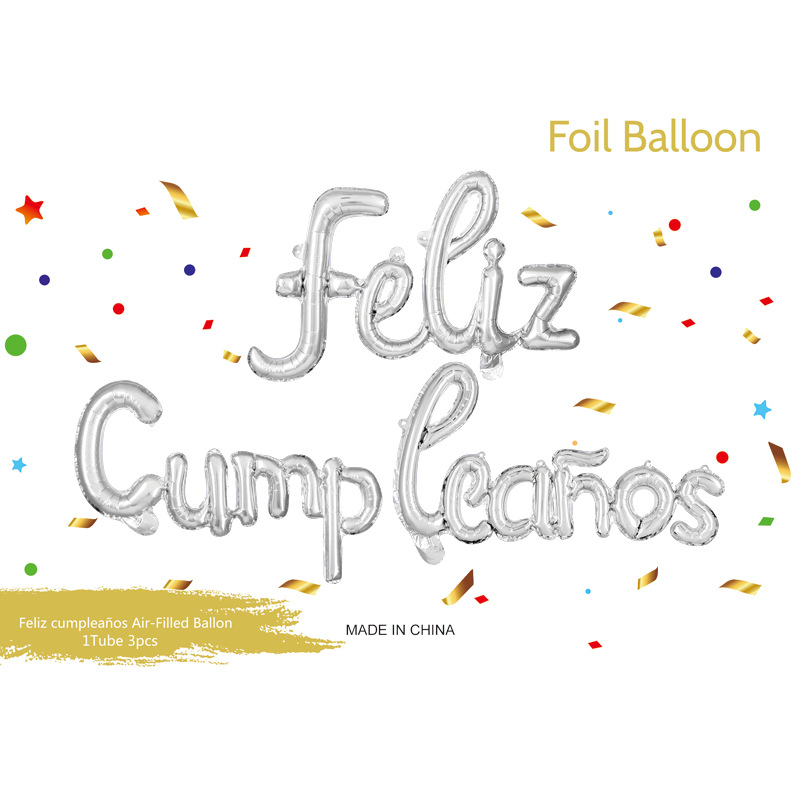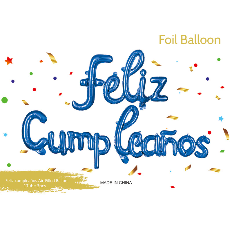 공장 도매 스페인어 결합 생일 축하 알루미늄 필름 세트 feliz cumpleanos 풍선 포장