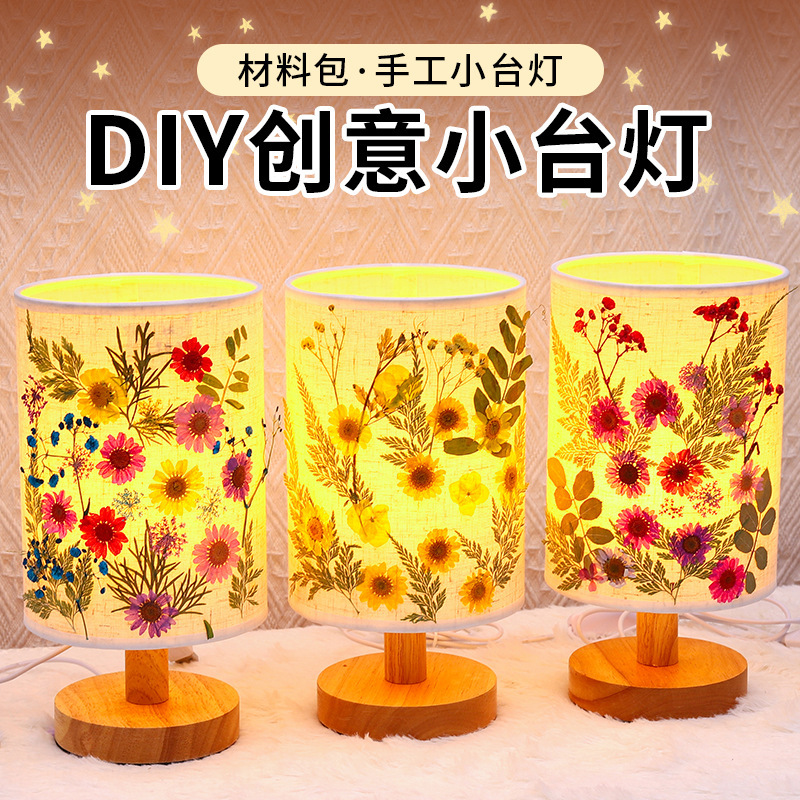 말린 꽃 테이블 램프 DIY 소재 가방 어린이 수제 양각 테이블 램프 야간 조명 장식품 여성의 날 활동 그룹 빌딩스토어 가기