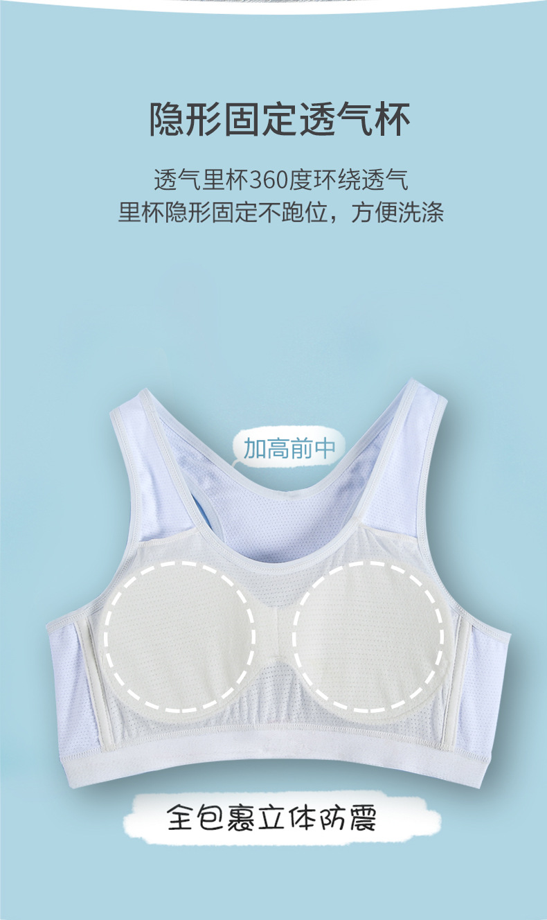 여아 발달기 스포츠 브라, 중고등학생 고정컵 스포츠 러닝 충격방지 코튼 조끼 브라 풀컵스토어 가기