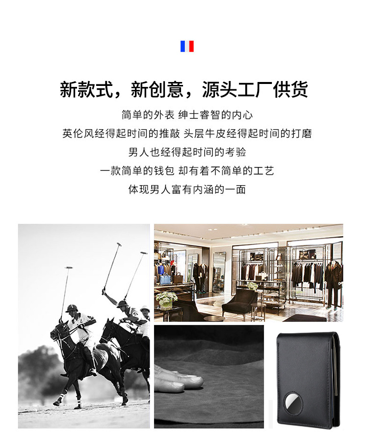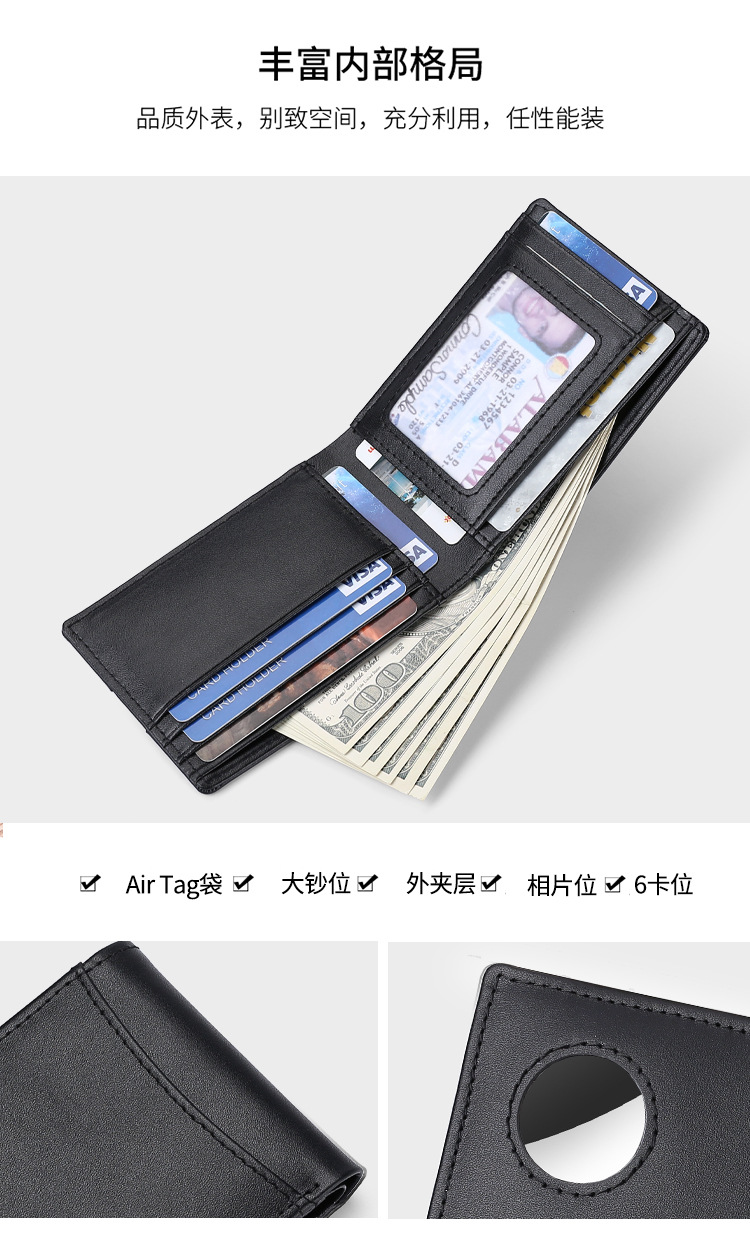 크로스 보더 아메리칸 가죽 지갑 남성용 에어태그 애플 트래커 로케이터 골드 클립 자기 방지 도난 방지 도매스토어 가기