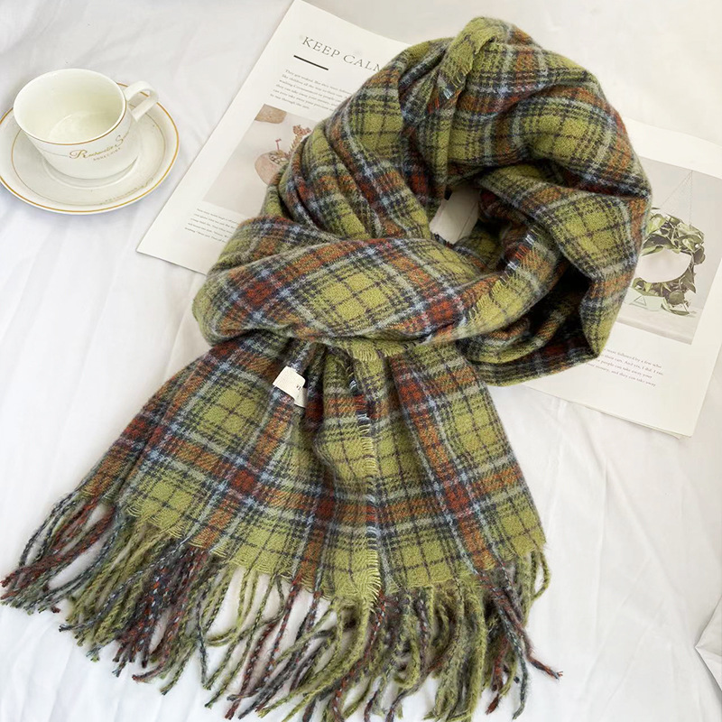 녹색 격자 무늬 스카프 가을과 겨울 새 커플 따뜻한 스카프 일본과 한국 문학 스타일 모조 캐시미어 목도리의 인기 한국어 버전
