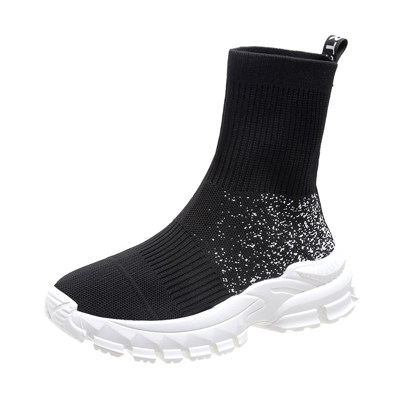 여성용 양말 신발 2025년 신상 봄 가을 니트 신축성 단화 여성용 중간 길이 운동화 캐주얼 숏부츠