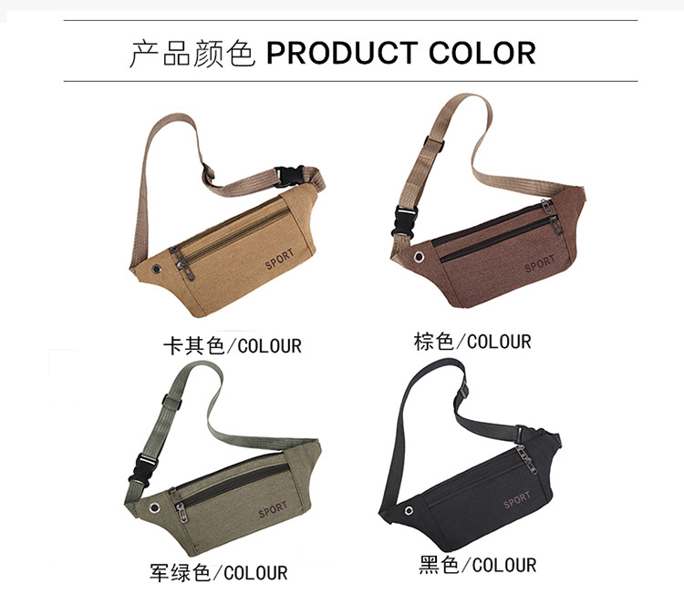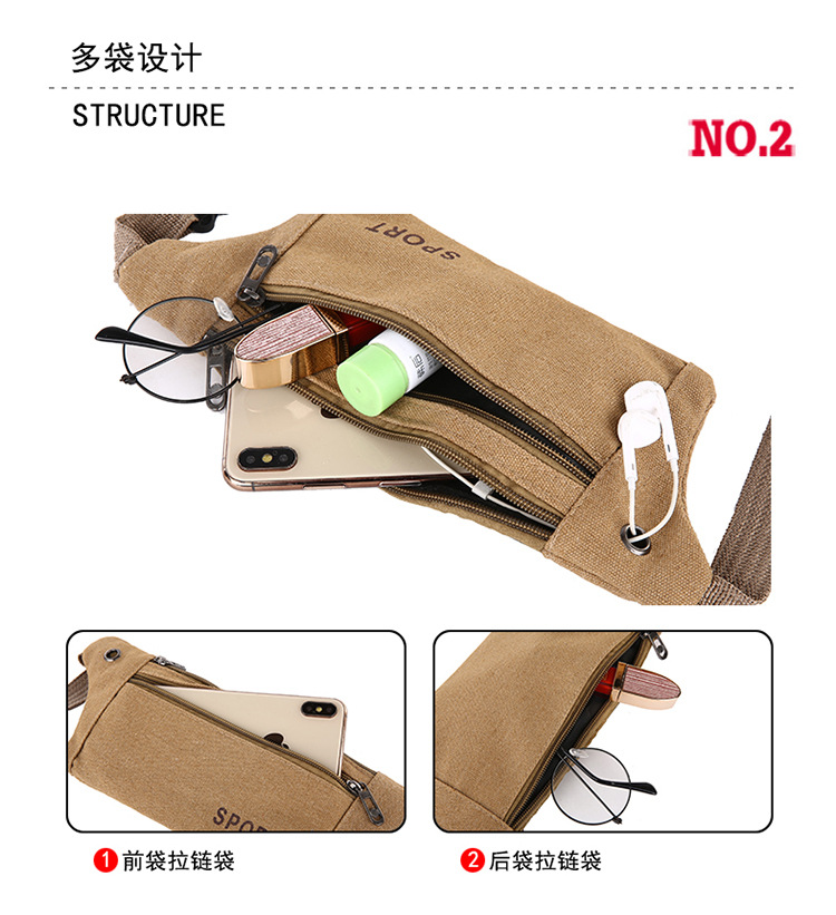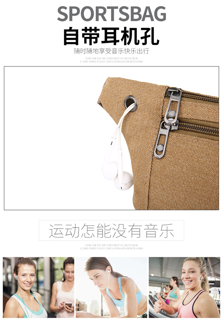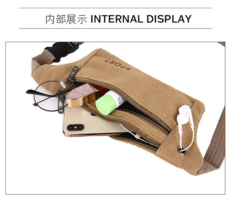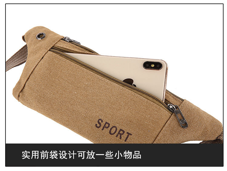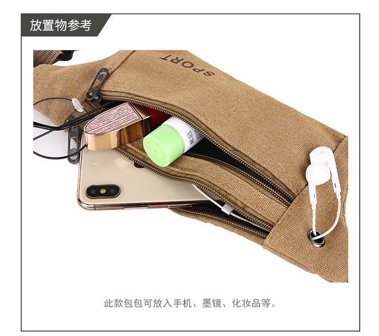 새로운 캔버스 러닝 허리 가방, 국경을 넘는 야외 스포츠 및 레저 다기능 남성용 몸에 꼭 맞는 보이지 않는 초박형 휴대폰 가방