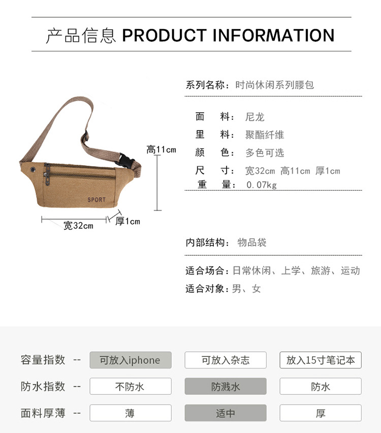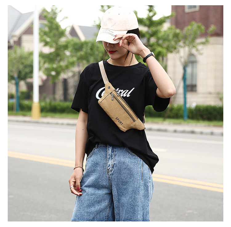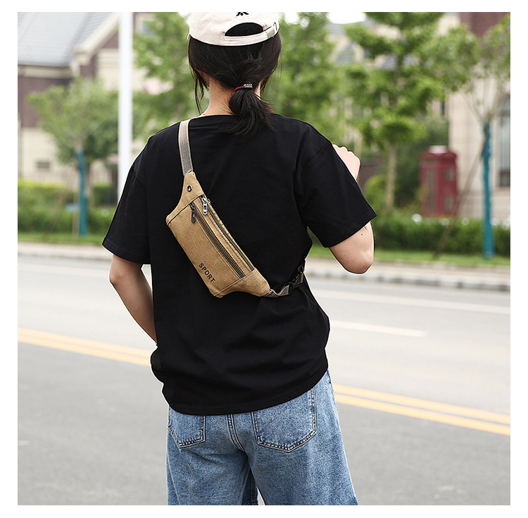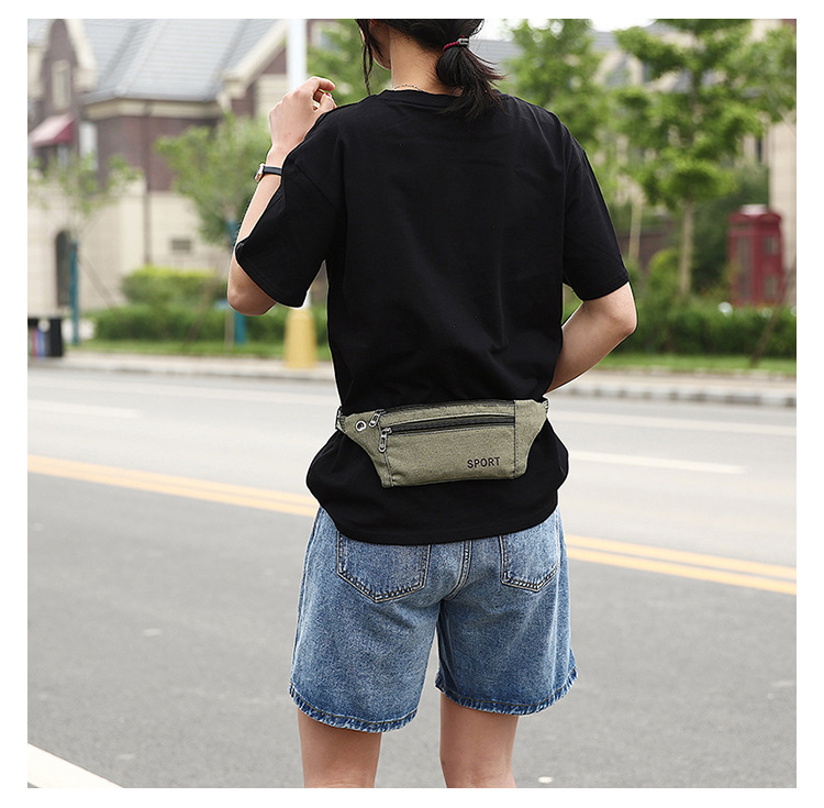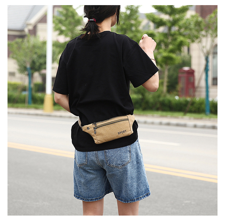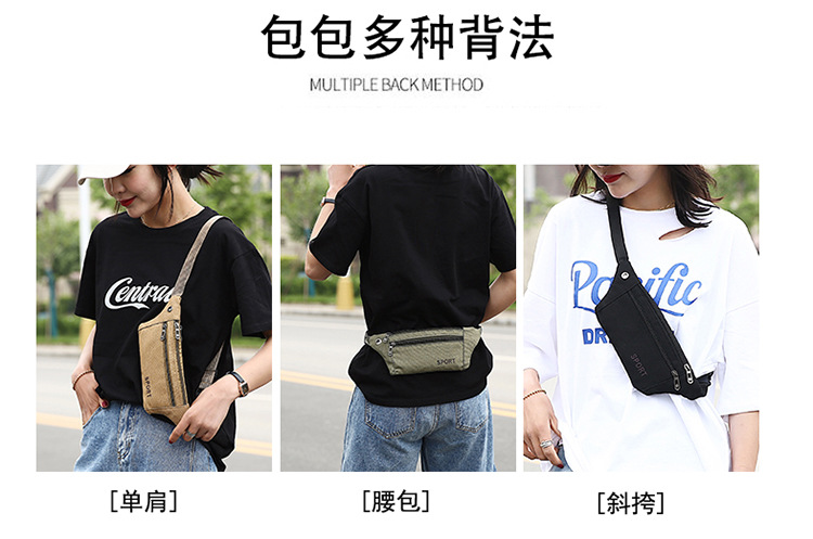 새로운 캔버스 러닝 허리 가방, 국경을 넘는 야외 스포츠 및 레저 다기능 남성용 몸에 꼭 맞는 보이지 않는 초박형 휴대폰 가방