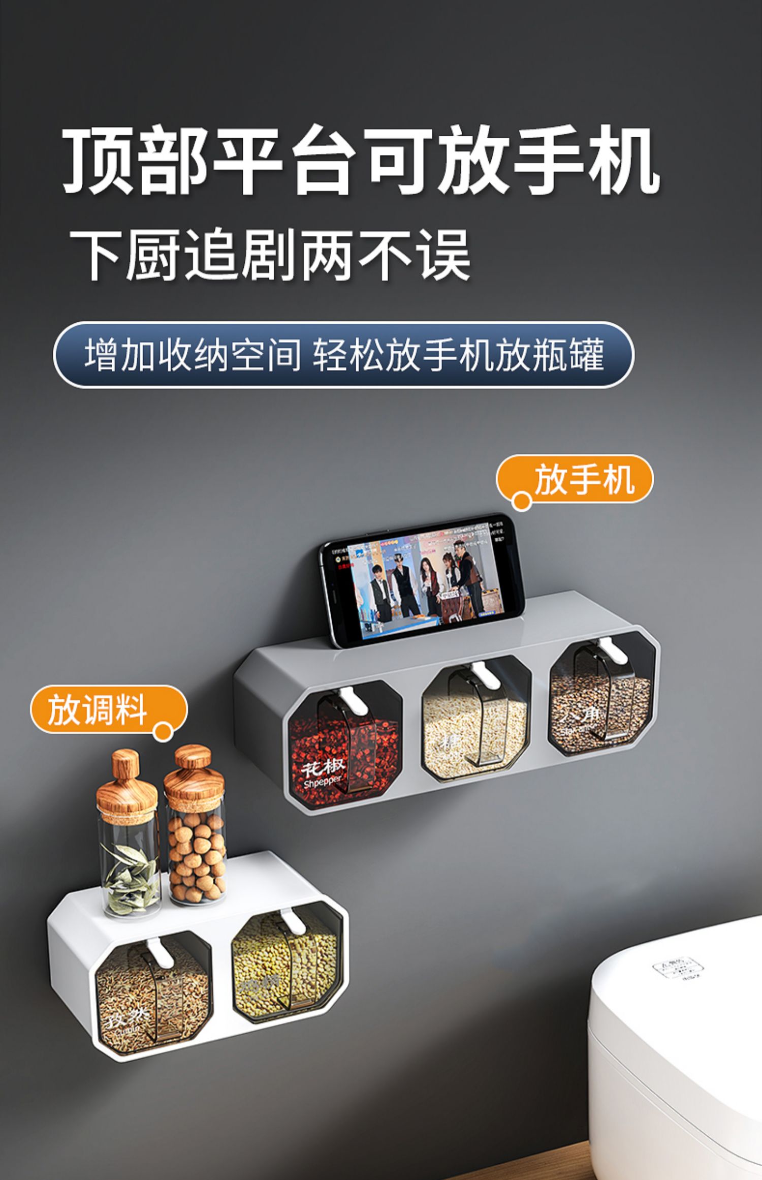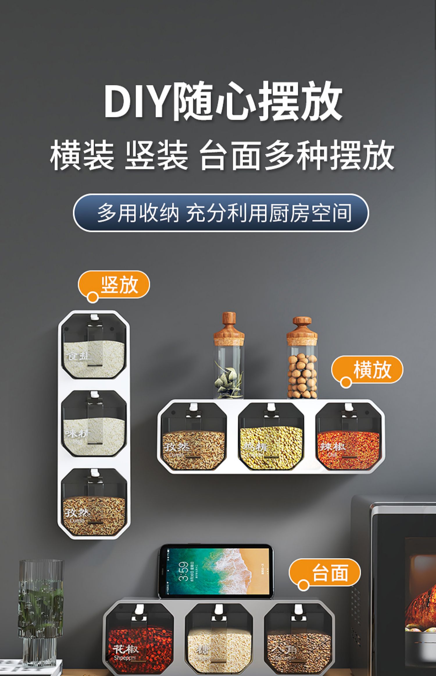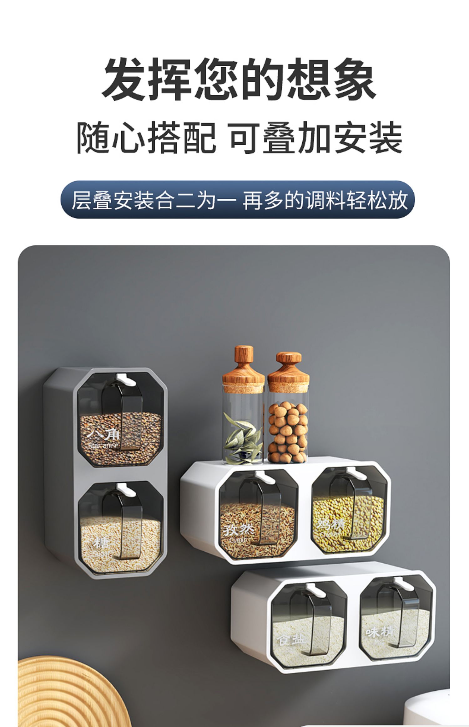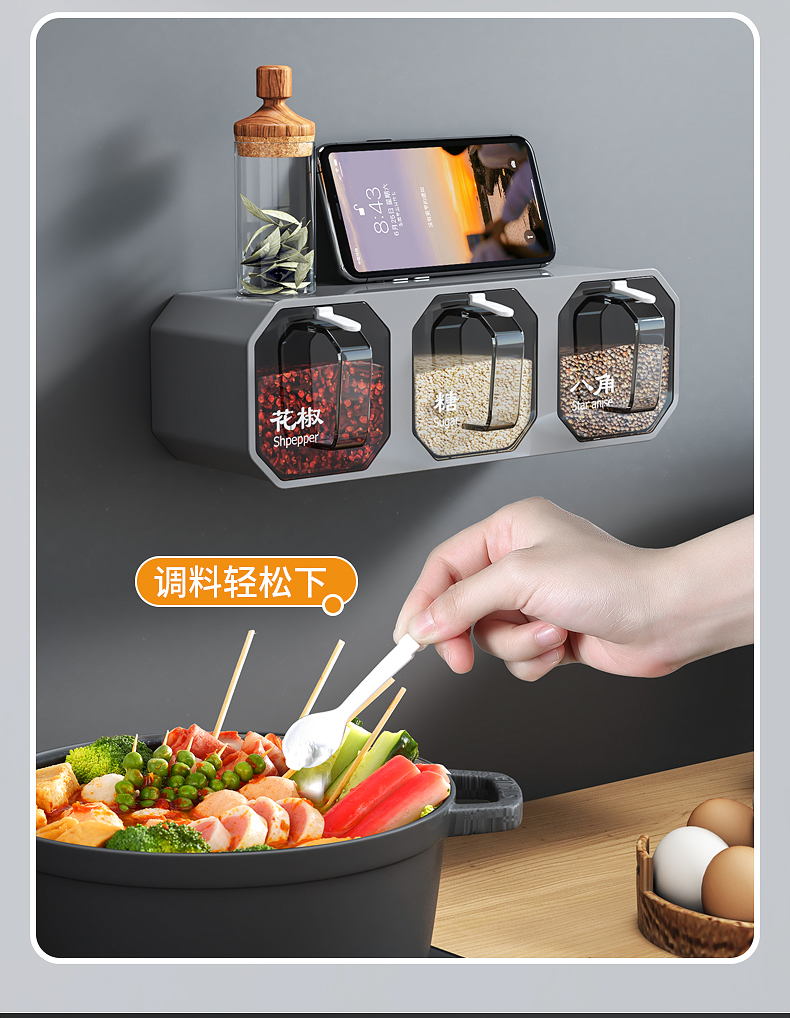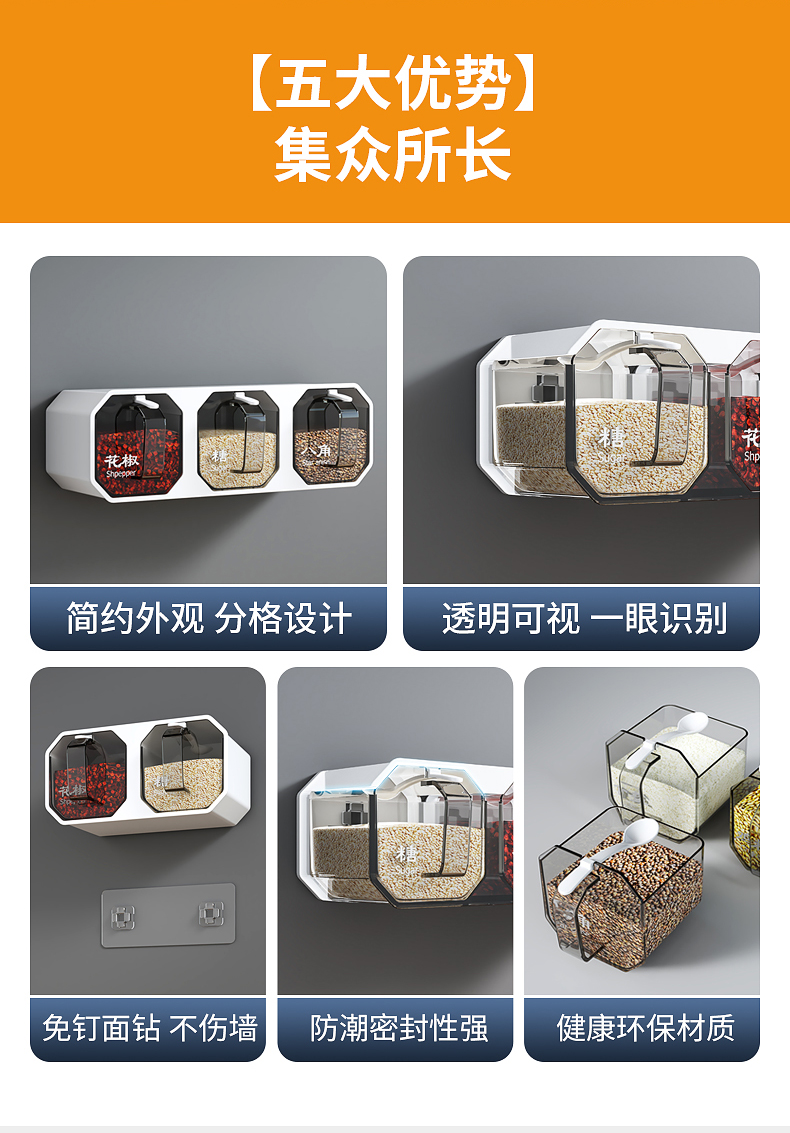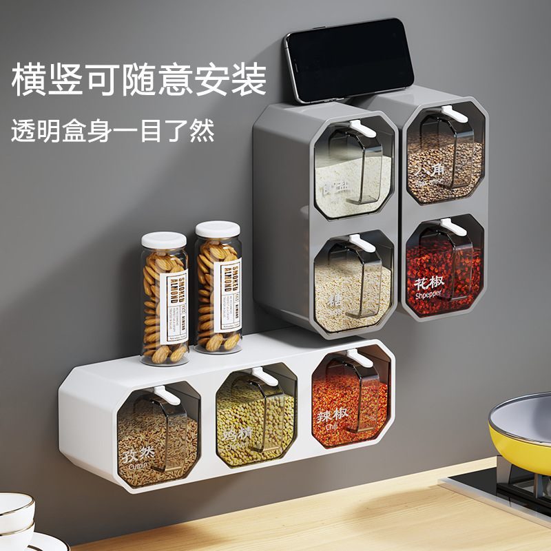 벽걸이 형 조미료 상자 주방 용품 통합 멀티 구획 보관 MSG 병 소금 냄비 가정용 조미료 상자 조합 세트스토어 가기