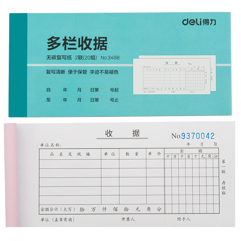 델리 영수증 더블 트리플 컬렉션 영수증 단일 열 다중 열 영수증 시트 2 무탄소 복사 필기 영수증