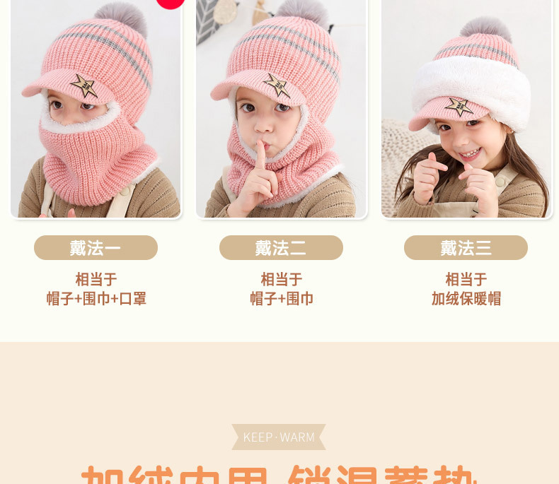 어린이 봉제 니트 모자 가을과 겨울 2-7 세 아기 소년과 소녀 기모 양모 방풍 귀 보호 목 통합 모자스토어 가기