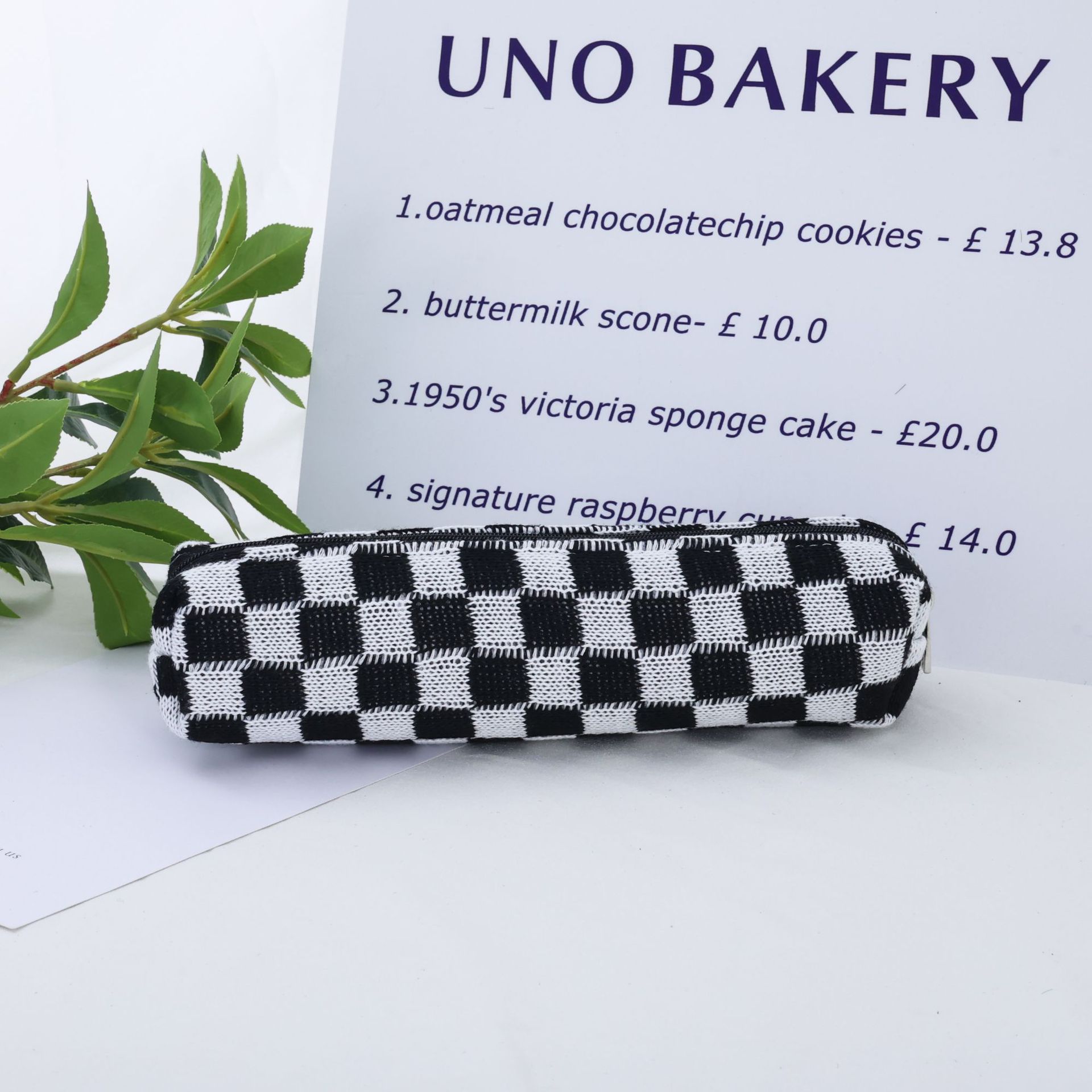 한국식 체스 판 격자 무늬 니트 연필 케이스 대용량 고학생 문구 상자 중학생 패션 연필 케이스