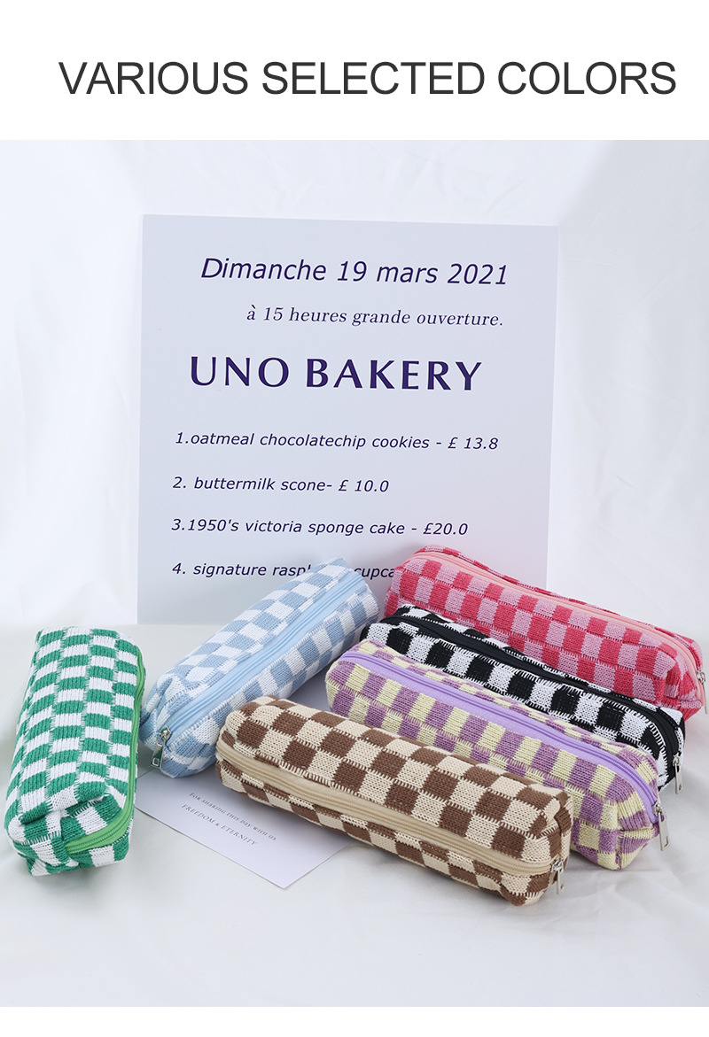 한국식 체스 판 격자 무늬 니트 연필 케이스 대용량 고학생 문구 상자 중학생 패션 연필 케이스스토어 가기