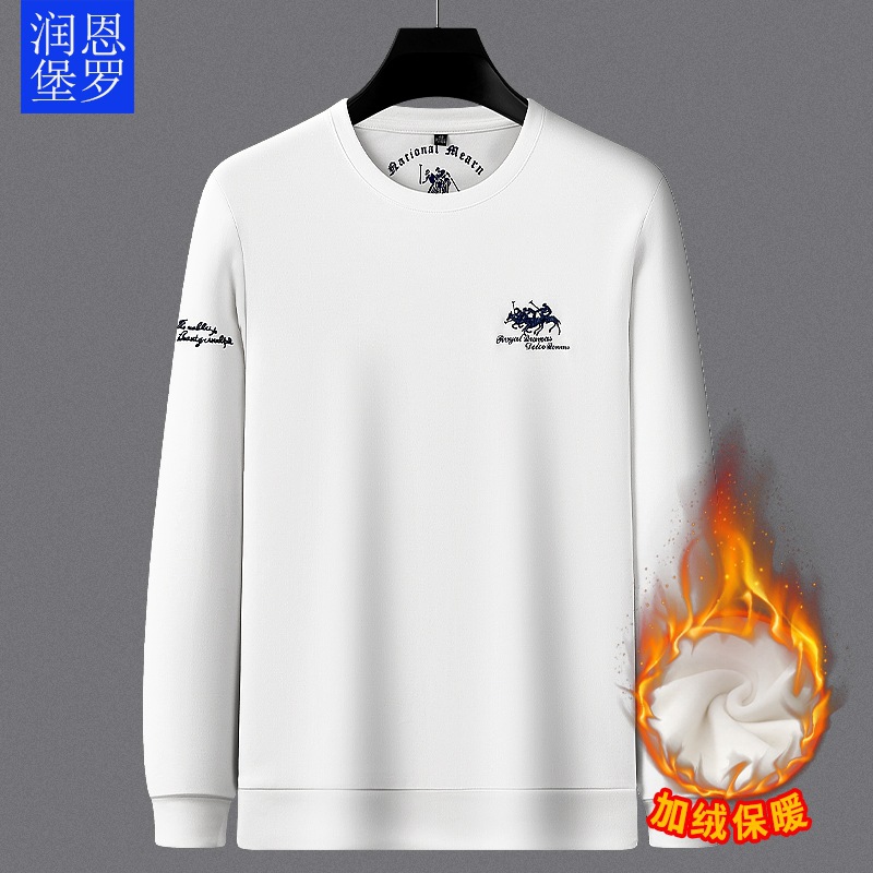 Runenboro 남성복 메인 푸시 420g 기모 따뜻한 스웨터 남자의 긴 소매 티셔츠 남자의 라운드 넥 겨울 기본 셔츠