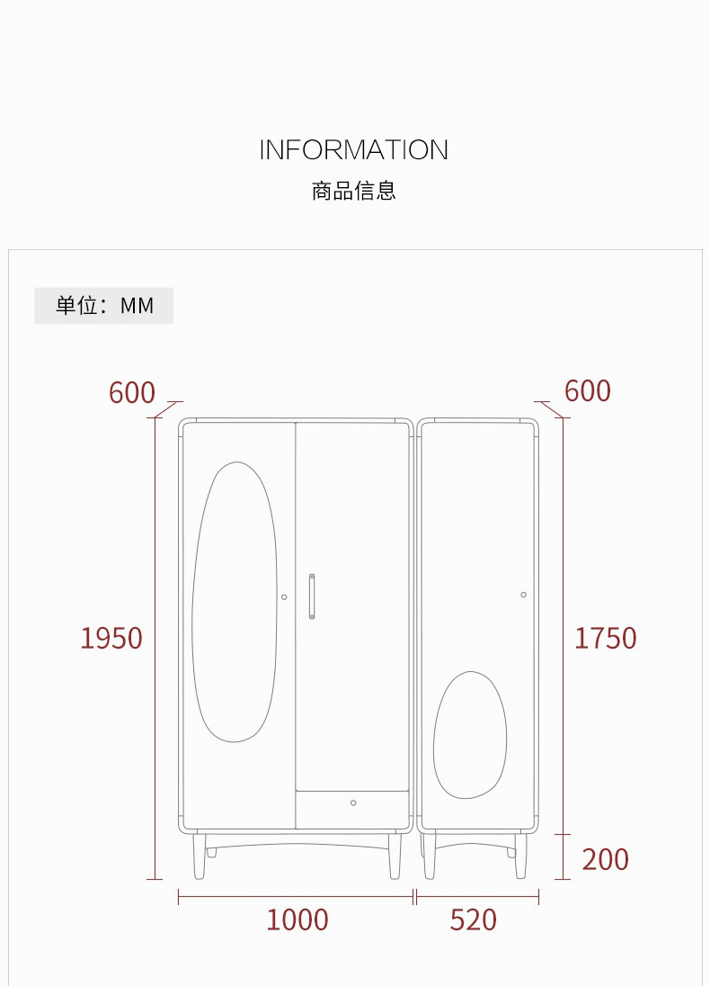 • 싱글 도어 옷장 + B 더블 도어 옷장