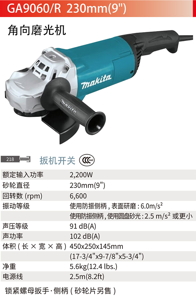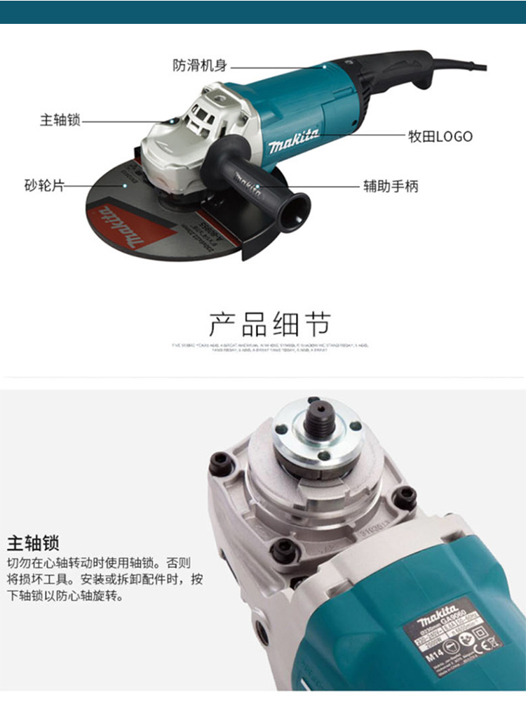 Makita (MAKITA)GA9060 앵글 그라인더 연마 기계 절단 기계 손 연삭 휠 230mm 트리거 스위치