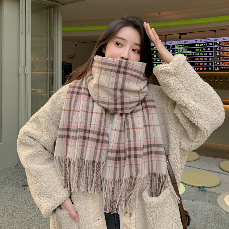 스카프 여성용 2022 새로운 스타일 숄 모든 매치 한국 스타일 가을과 겨울 따뜻한 두꺼운 캐시미어 격자 무늬 스카프 이중 사용 스카프스토어 가기