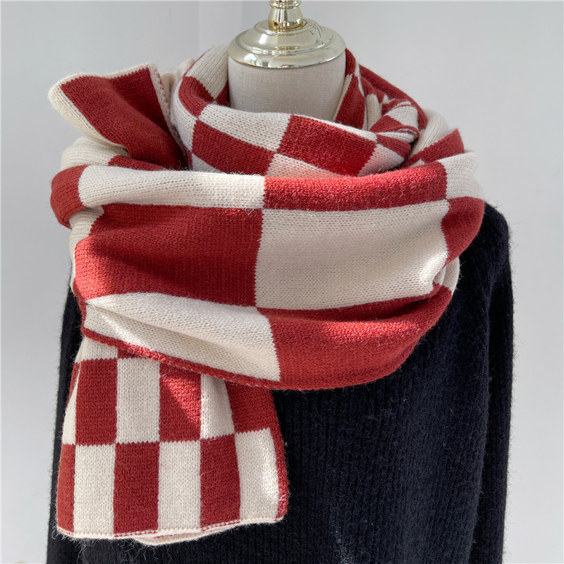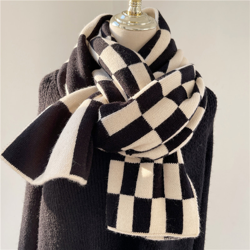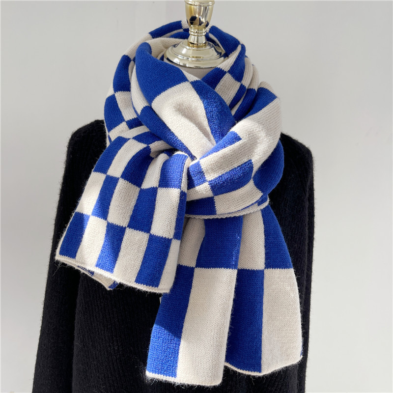 2022 New Klein 블루 바둑판 격자 무늬 니트 울 스카프 여아 스카프 학생 두꺼운 가을과 겨울 따뜻한