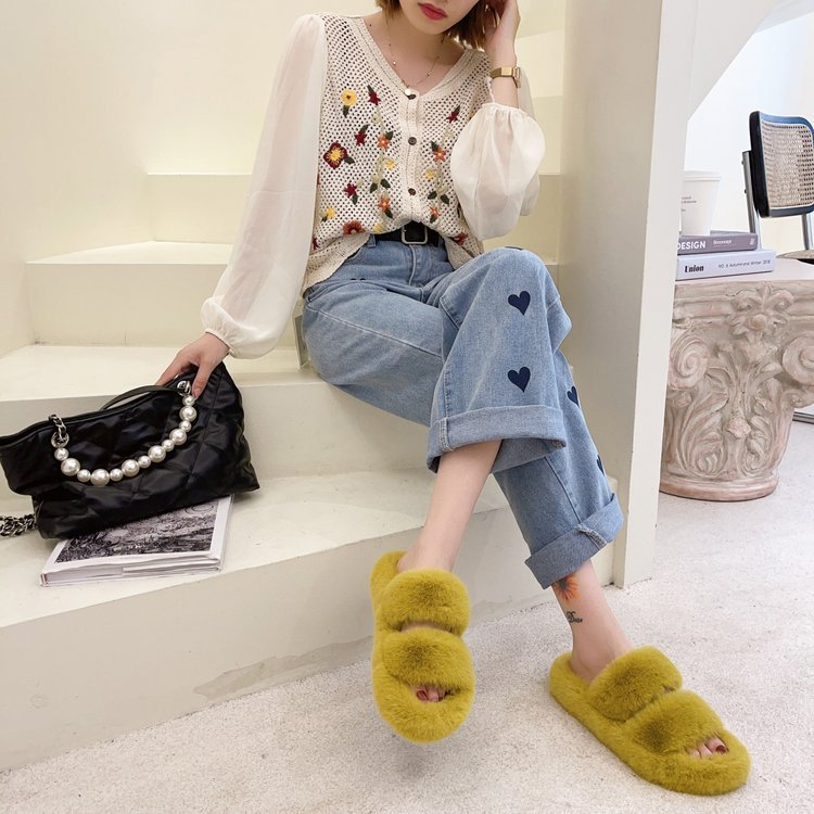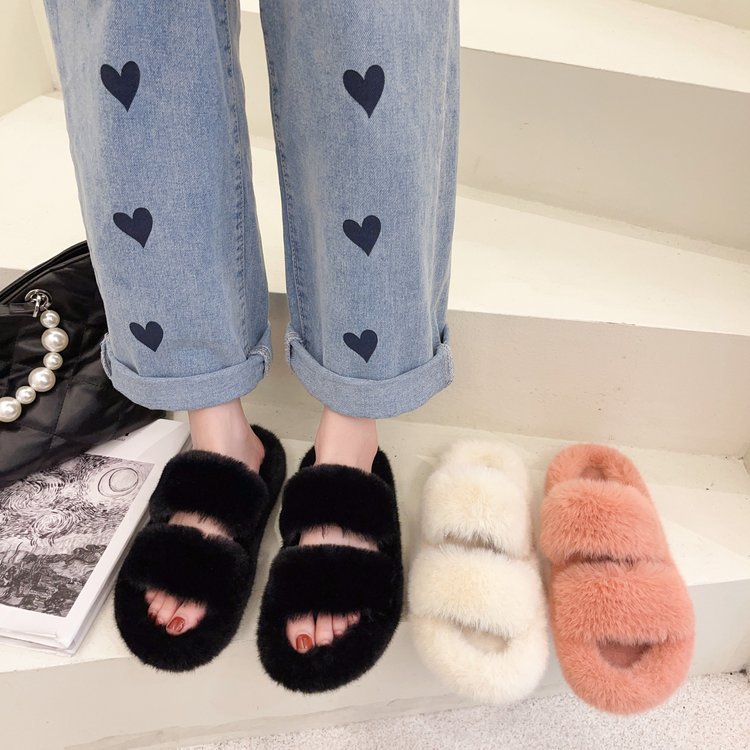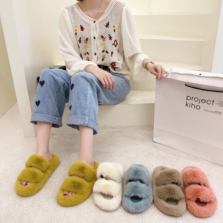 인터넷-유명한 두꺼운 밑창 푹신한 슬리퍼 여성용 캔디 컬러 가을과 겨울 실내 보온 한 단어 플러스 사이즈 면화 슬리퍼 가정용 및 실외 착용