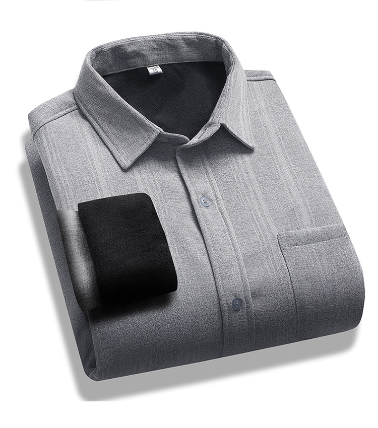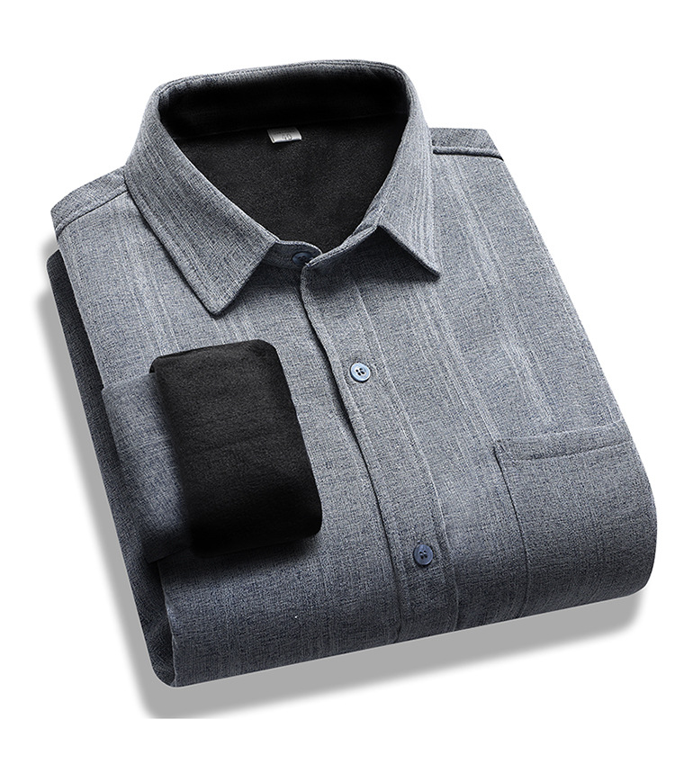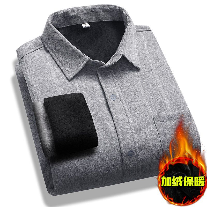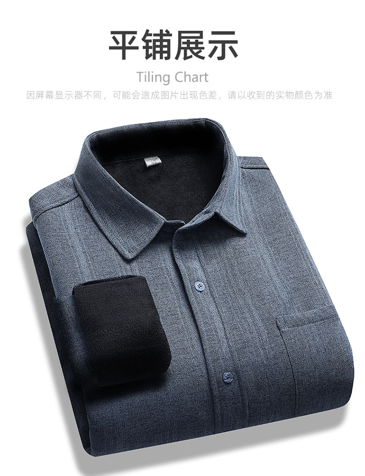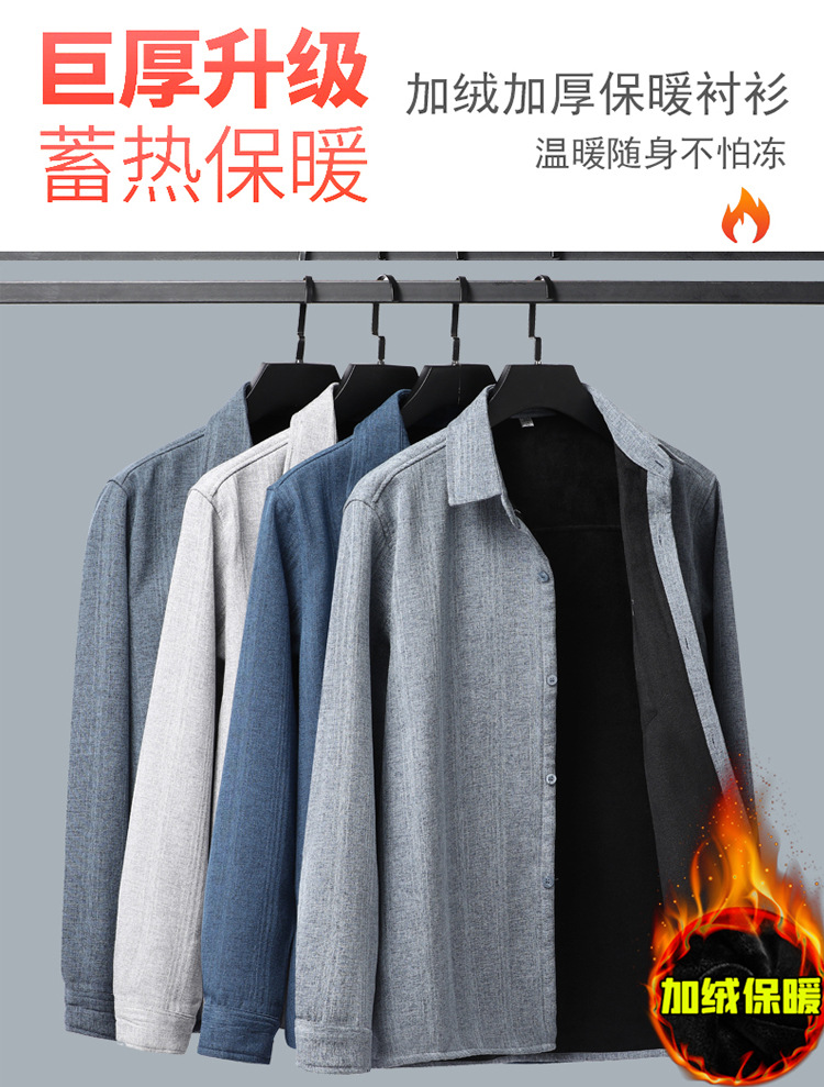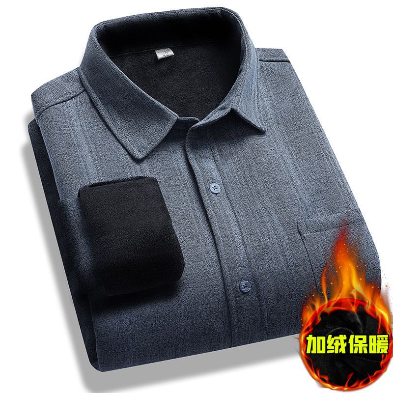 중년 및 노인 남성 긴팔 셔츠 가을과 겨울 기모 느슨한면과 린넨 셔츠 늙은 할아버지 플러스 사이즈 아빠 착용스토어 가기