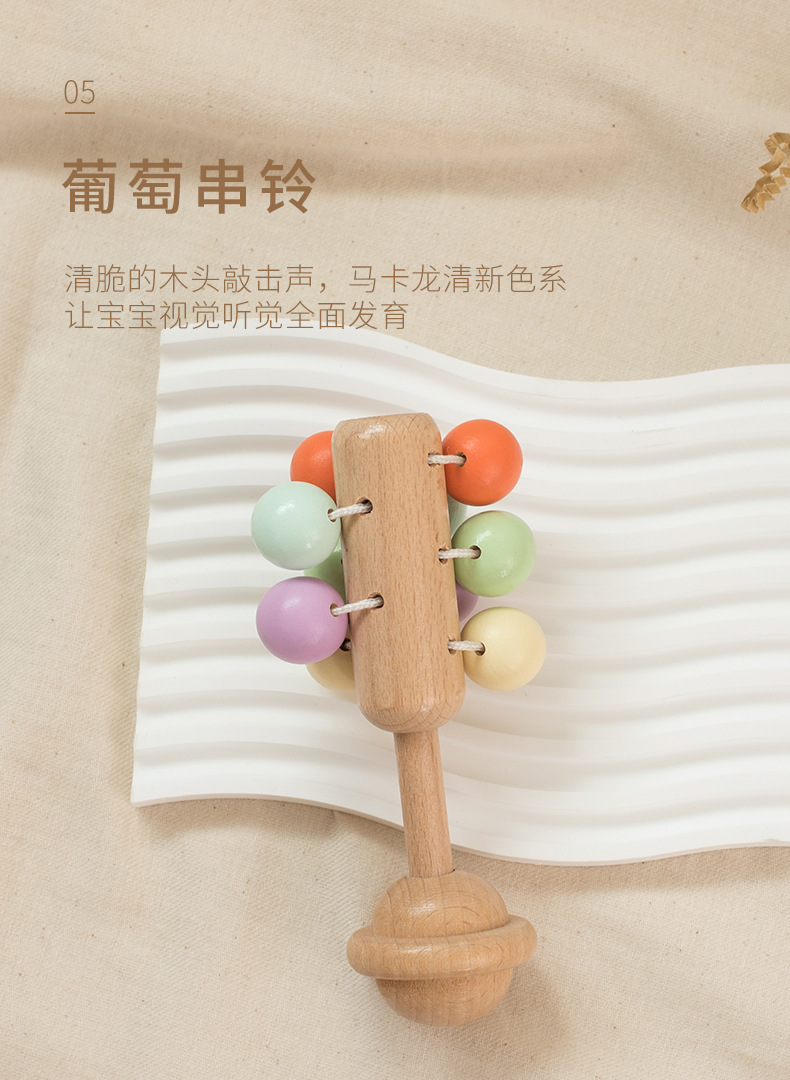 나무 아기 색깔 손 딸랑이 5 조각 세트 신생아 침대 벨 음악 조기 교육 퍼즐 진정 악기 장난감스토어 가기