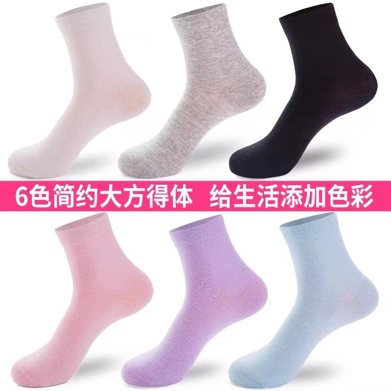 롱샤 양말 어린이 중간 길이 양말 사계절 한국식 아카데믹 스타일 여성용 순면 양말 트렌디 모든 매치 단색 심플 가을과 겨울 스타일스토어 가기