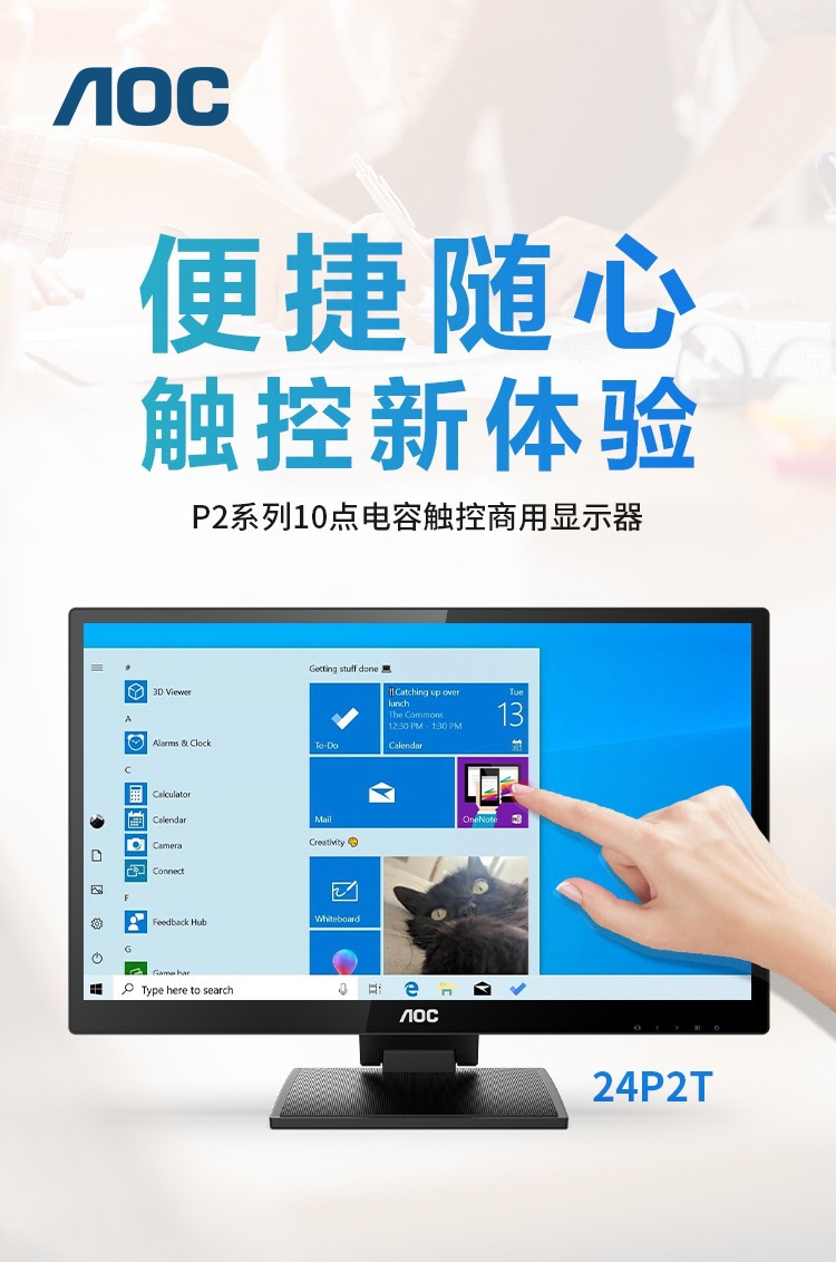 AOC 24P2T 23.8 인치 10 포인트 용량 성 터치 IPS 풀 HD 와이드 시야각 내장 오디오스토어 가기