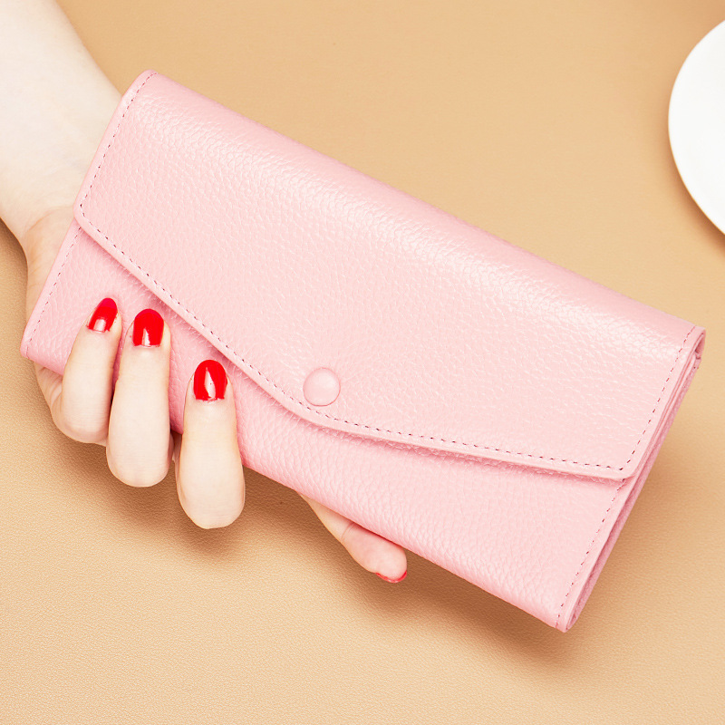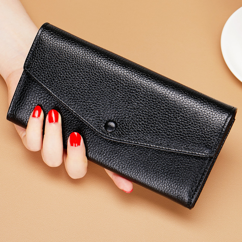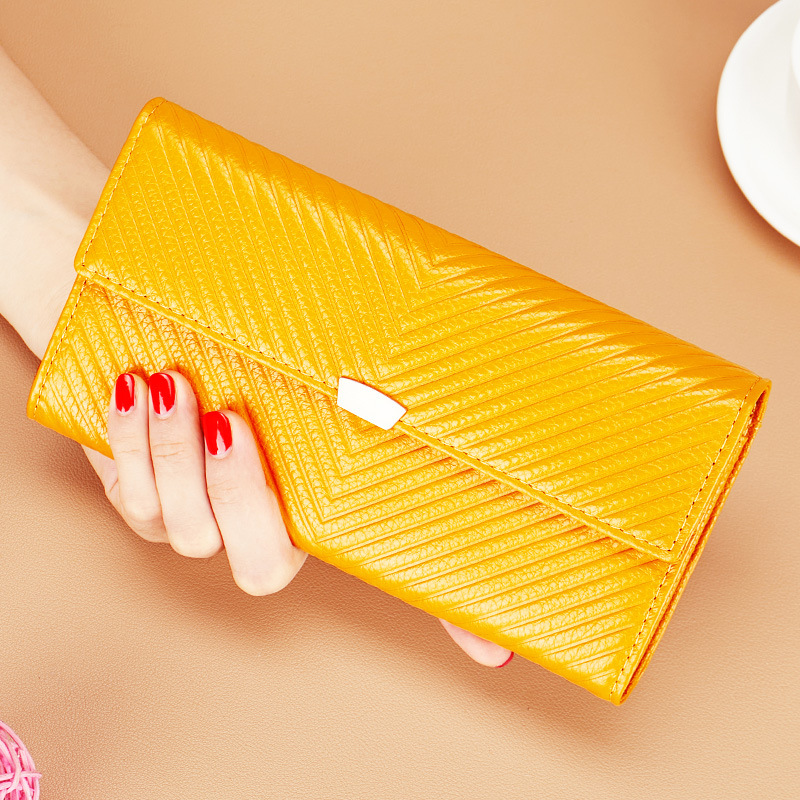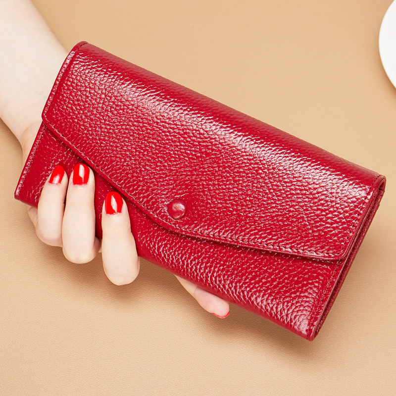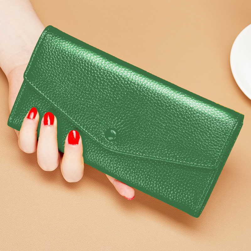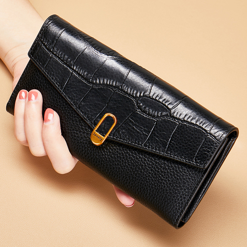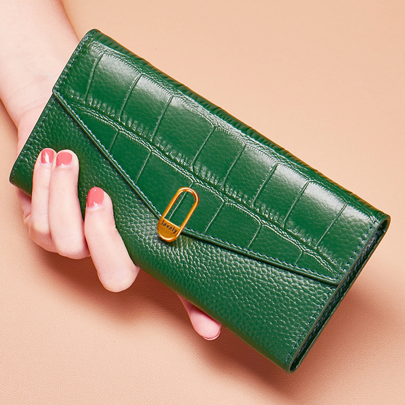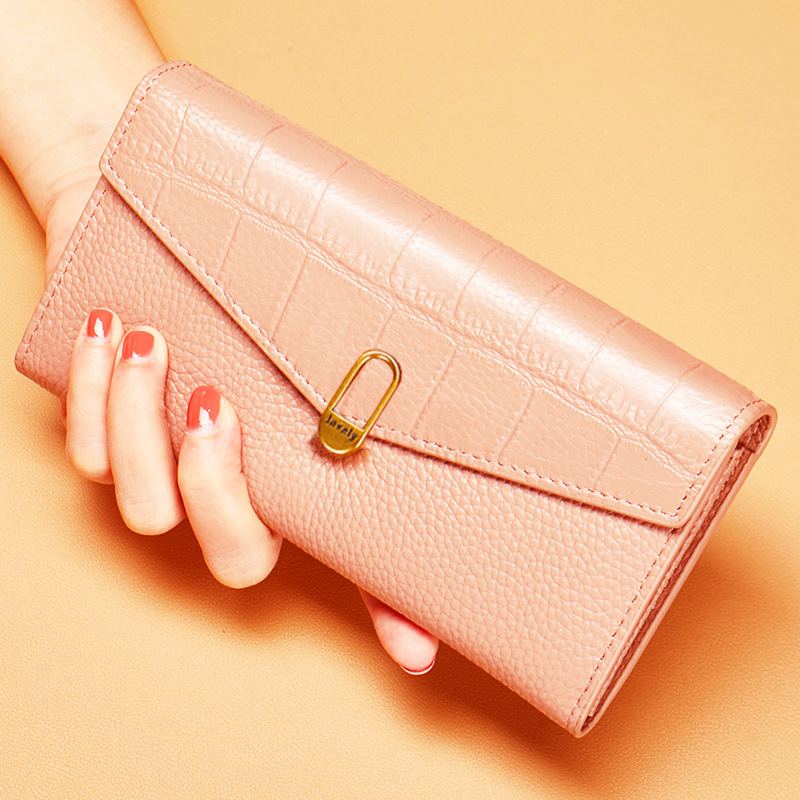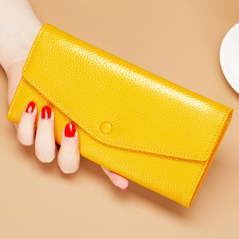 순수 가죽 소 가죽 노란색 행운의 지갑 여성 긴 스타일 2025 새로운 정품 가죽 지퍼 휴대 전화 대용량 지갑 얇은스토어 가기