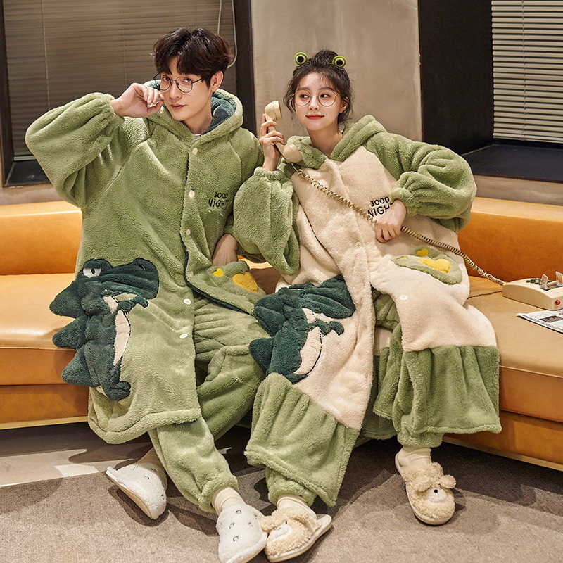 잠옷 여자의 가을과 겨울 긴 플란넬 두꺼운 커플의 플러스 사이즈 느슨한 목욕 가운 산호 양털 남자의 잠옷 가운스토어 가기