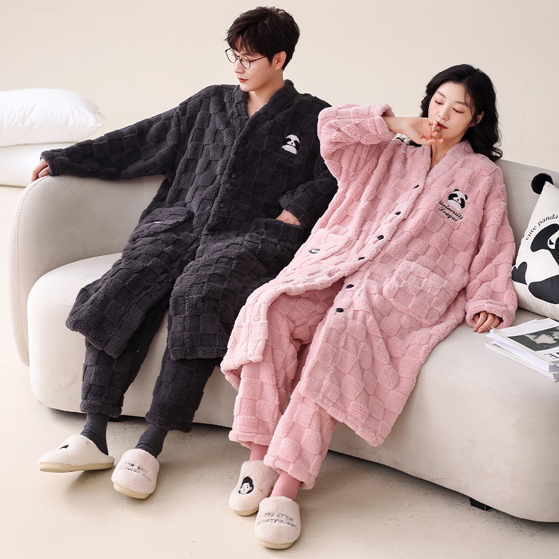 잠옷 여자의 가을과 겨울 긴 플란넬 두꺼운 커플의 플러스 사이즈 느슨한 목욕 가운 산호 양털 남자의 잠옷 가운