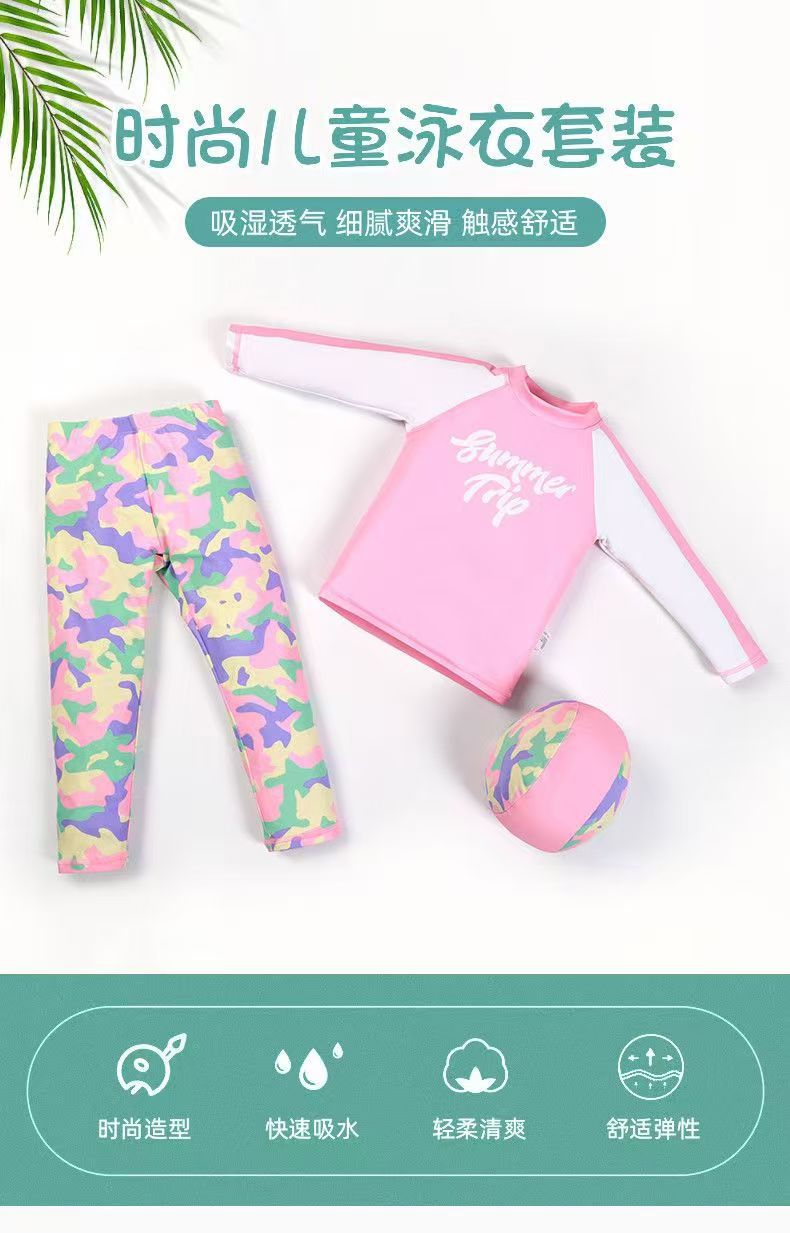 새로운 어린이 수영복 소녀 원피스 선스크린 위장 선 스크린 수영복 긴 소매 소녀 수영복