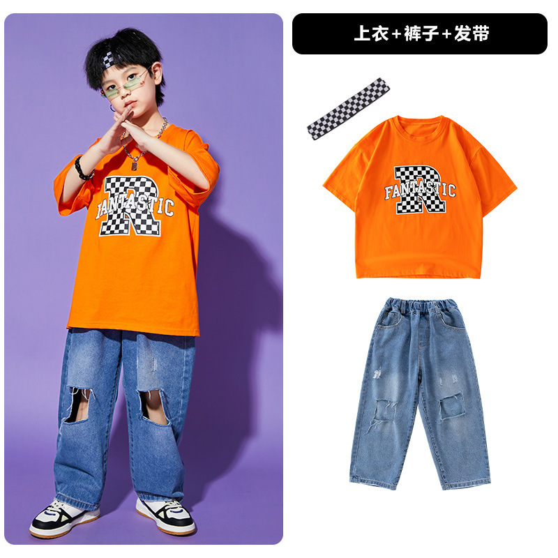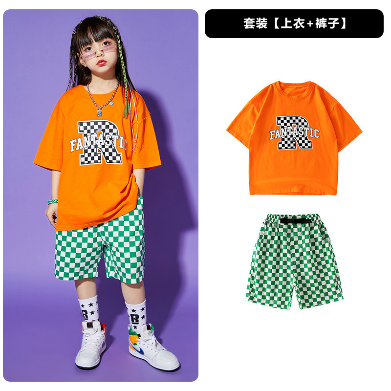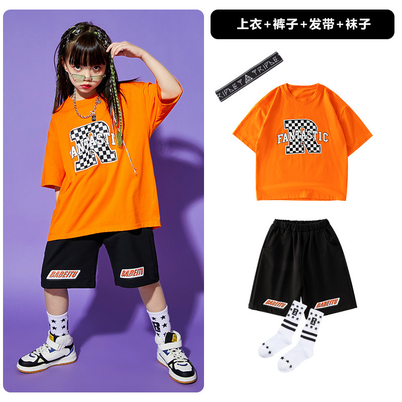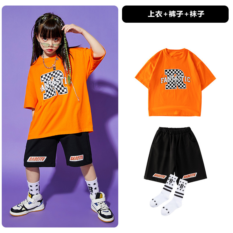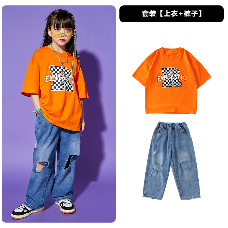 힙합 어린이 패션 의류 세트 힙합 세트 새로운 스타일 공연 의류 소년과 소녀를위한 여름 재즈 댄스 의류스토어 가기