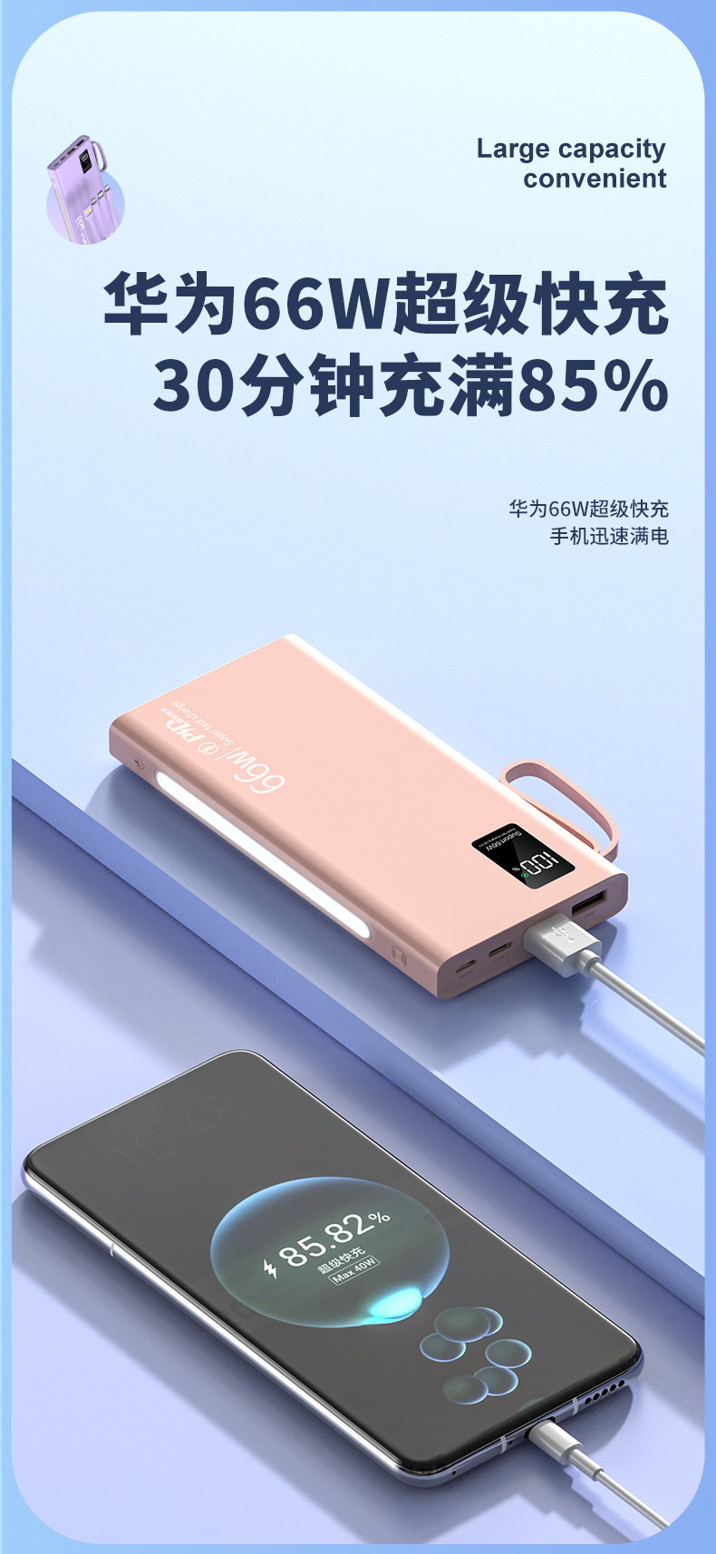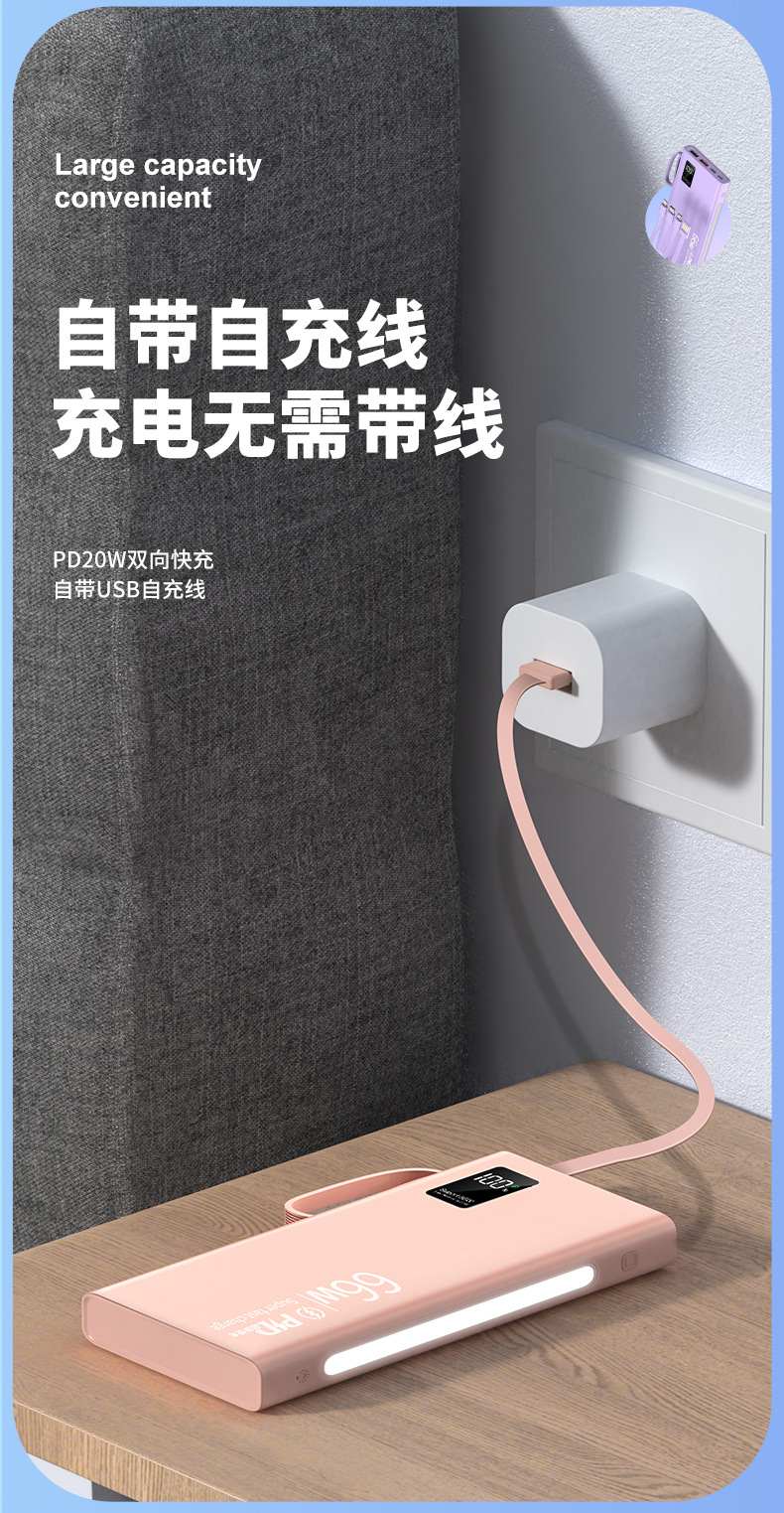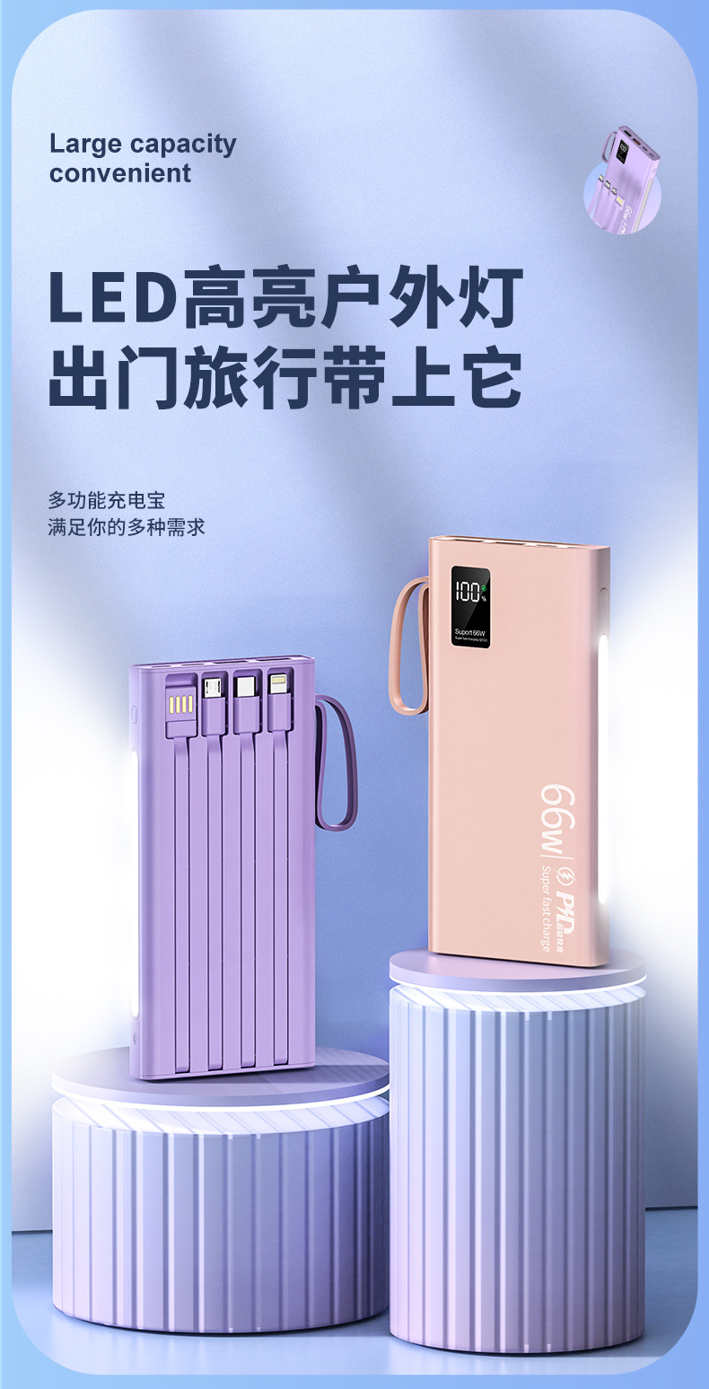 【产品功能】:超级快充,自带线,露营灯,挂绳,