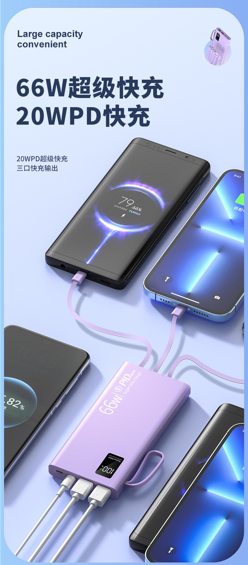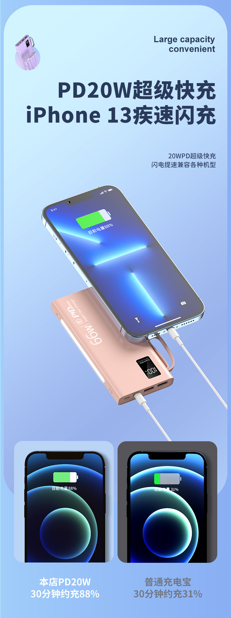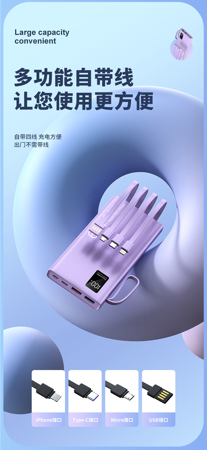 【产品功能】:超级快充,自带线,露营灯,挂绳,